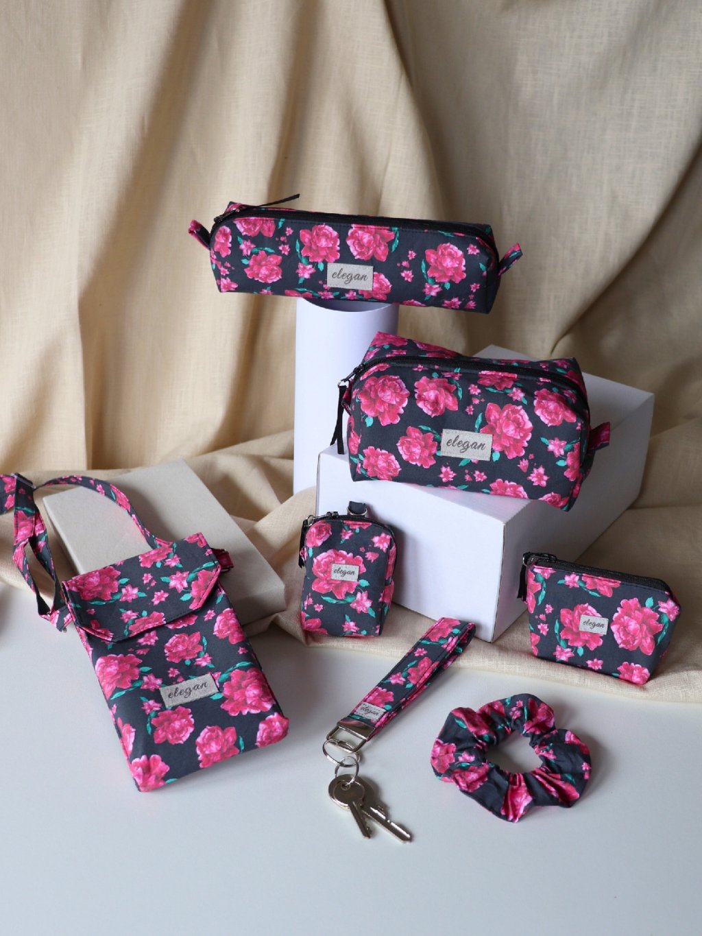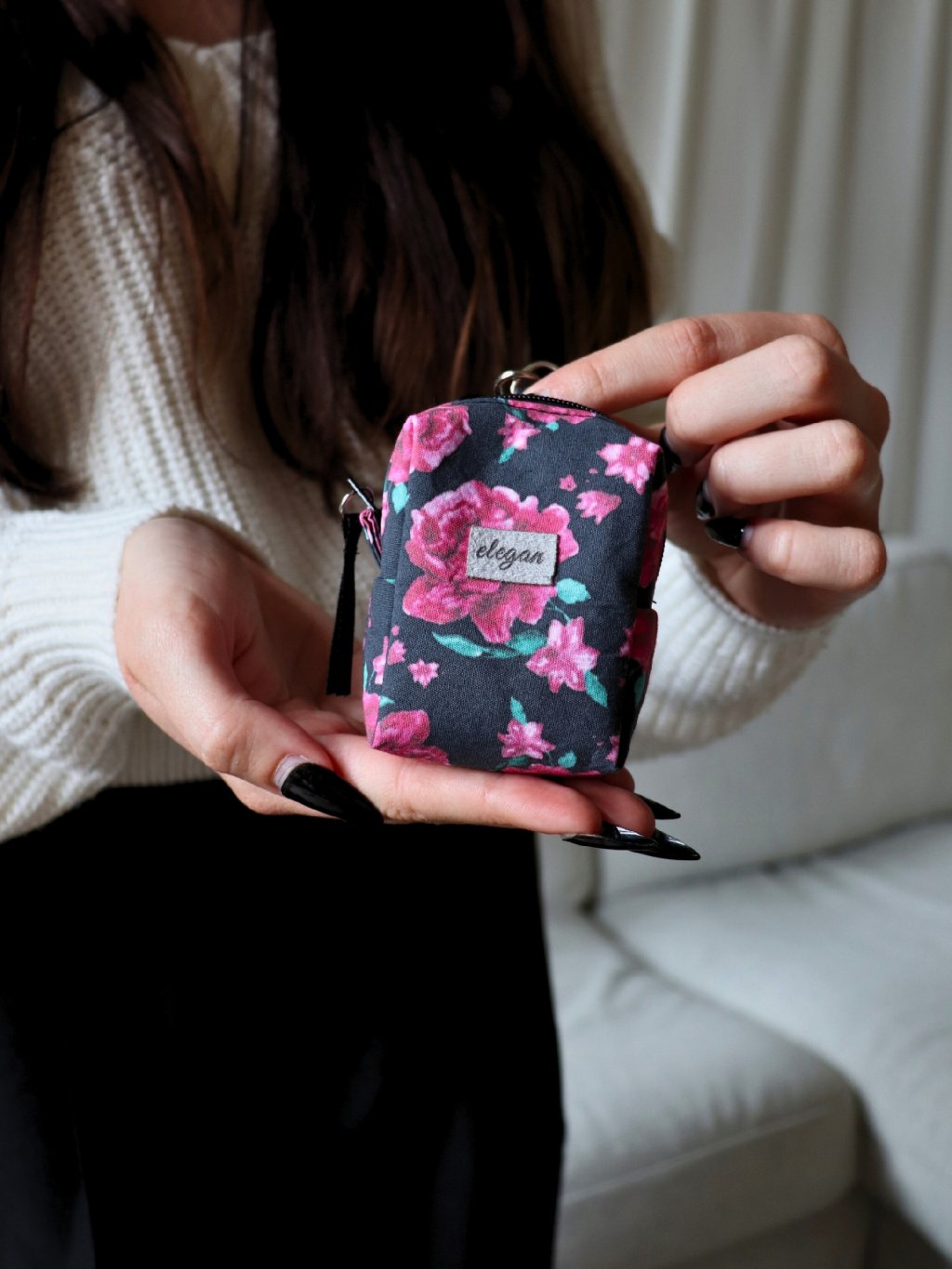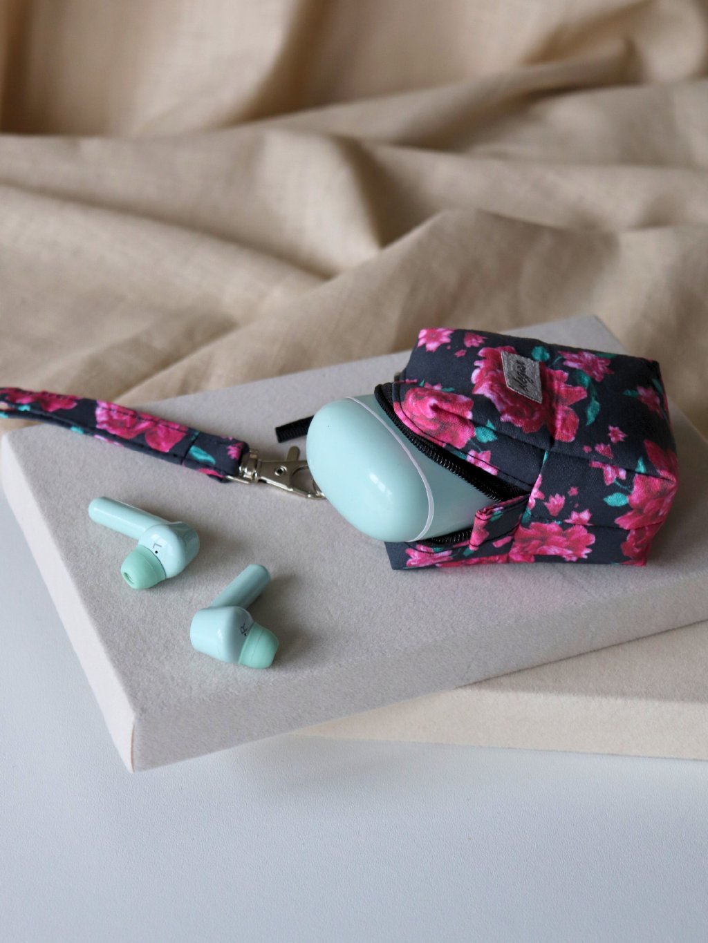 Designové pouzdro na malá sluchátka nebo šperky z naší kolekce Květka - autorský motiv květů ekologicky natištěný na látku.
