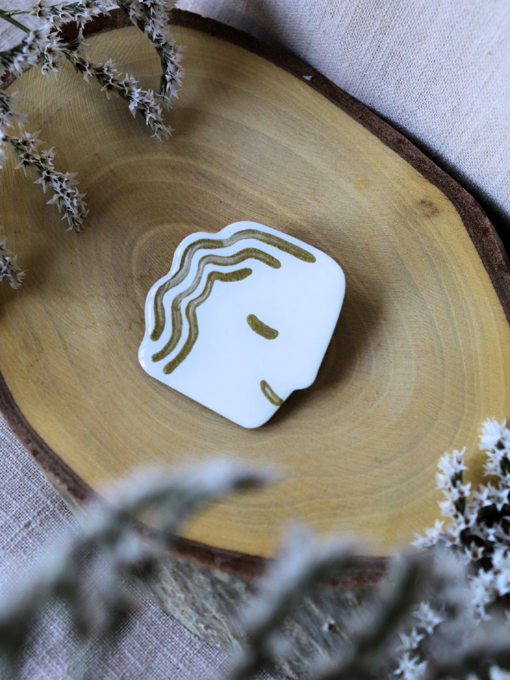 Brože jsou zdobeny ručně malovanými zlatými vzory. Naše brože se snadno kombinují s různými styly oblečení, ať už se jedná o ležérní nebo formální outfit.