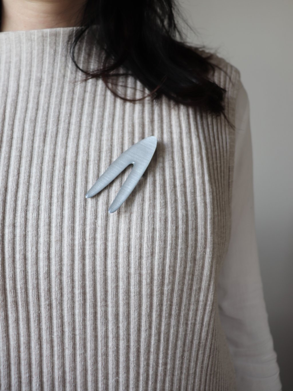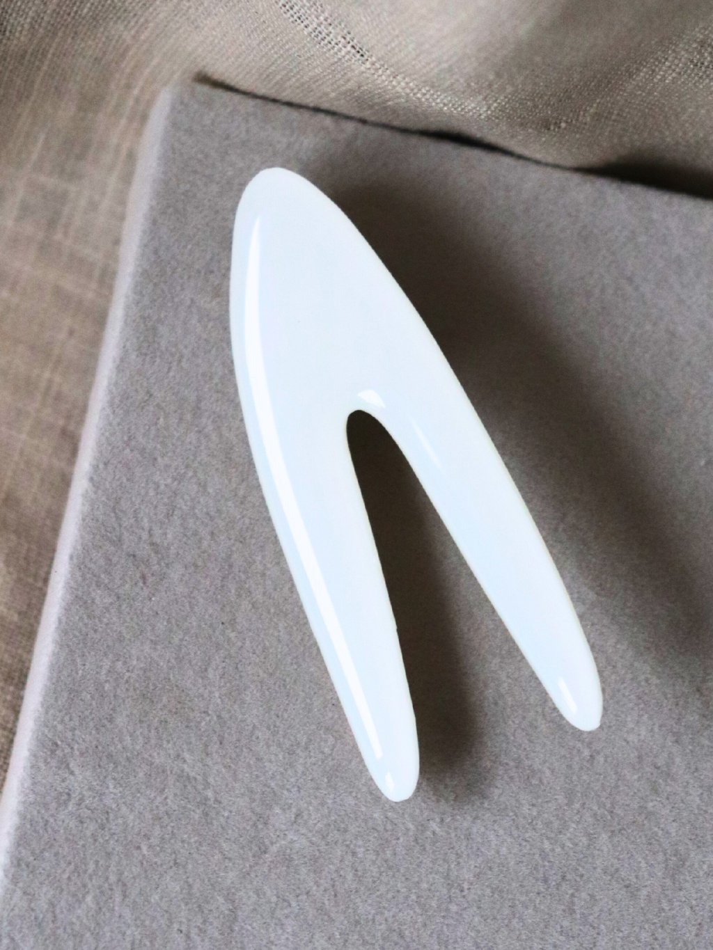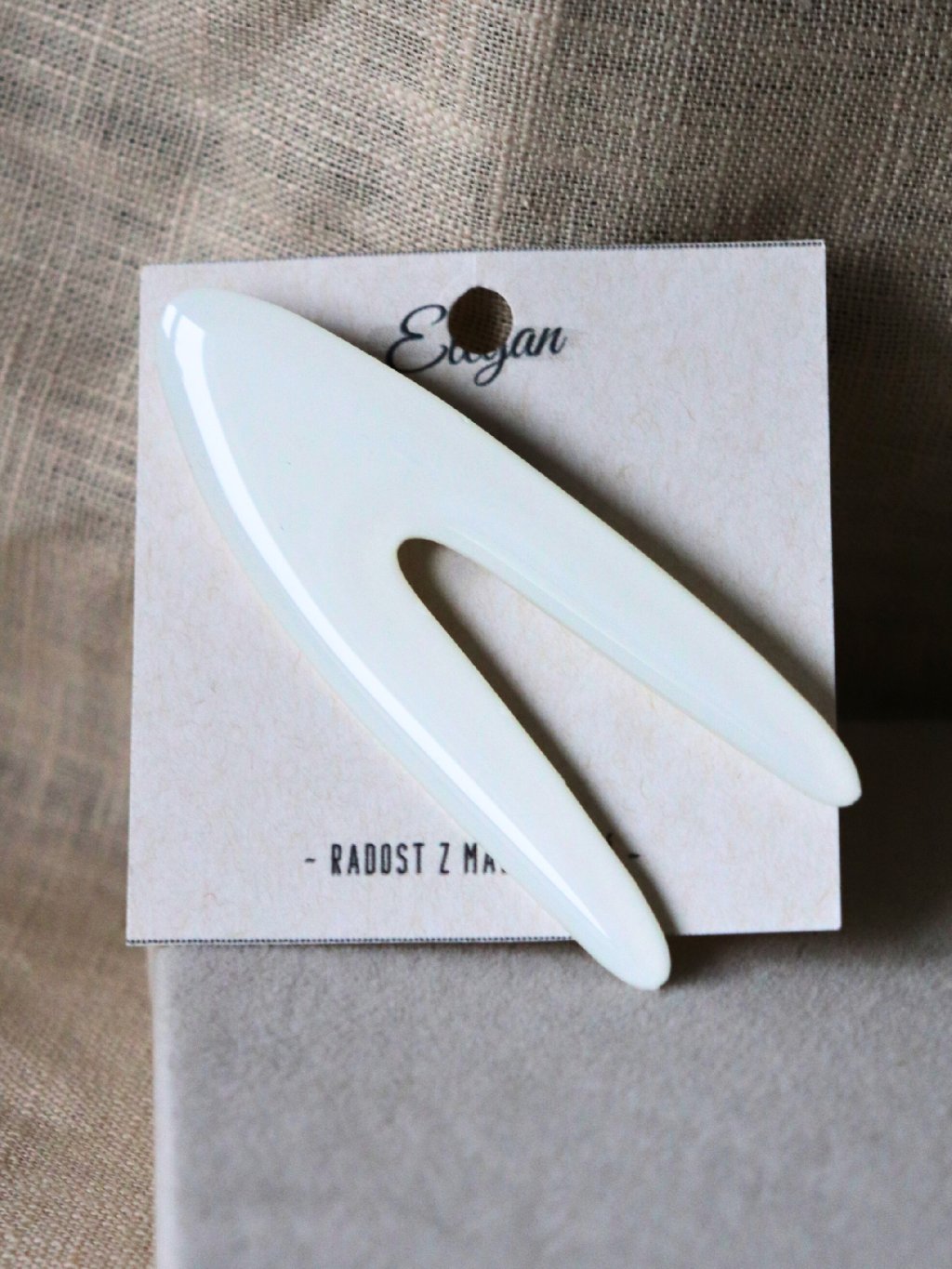 Minimalistická bílá lesklá brož ve tvaru jehlice