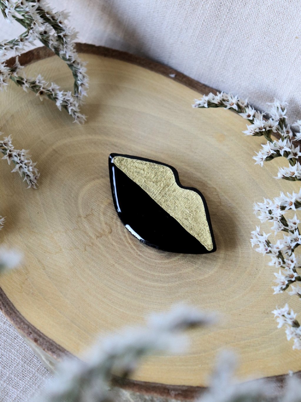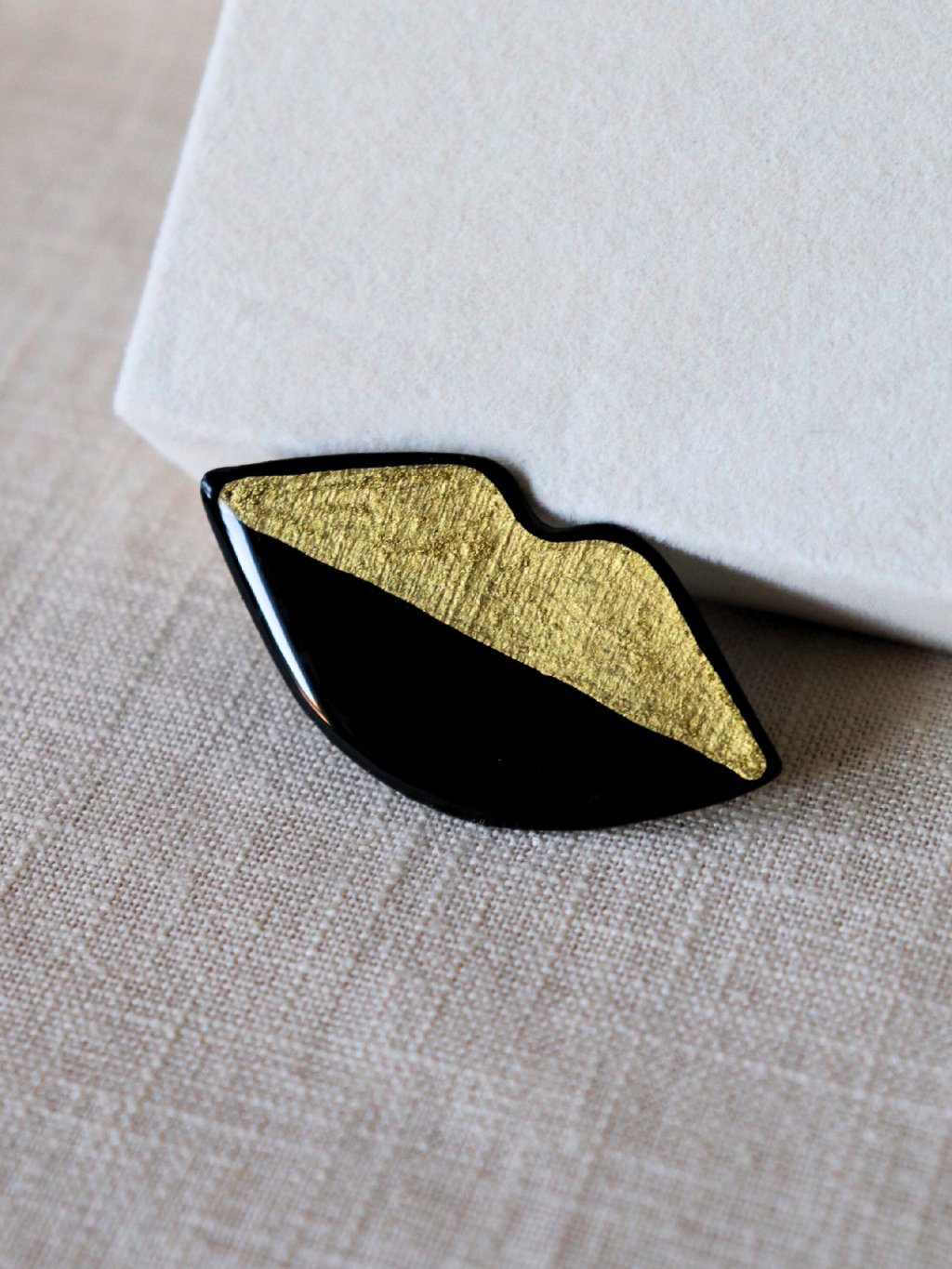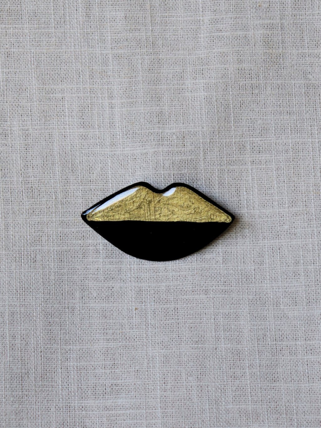 Zábavná brož ve tvaru pusinky - ručně vyrobený a malovaný šperk, který vznikl v naší dílně na Moravě.