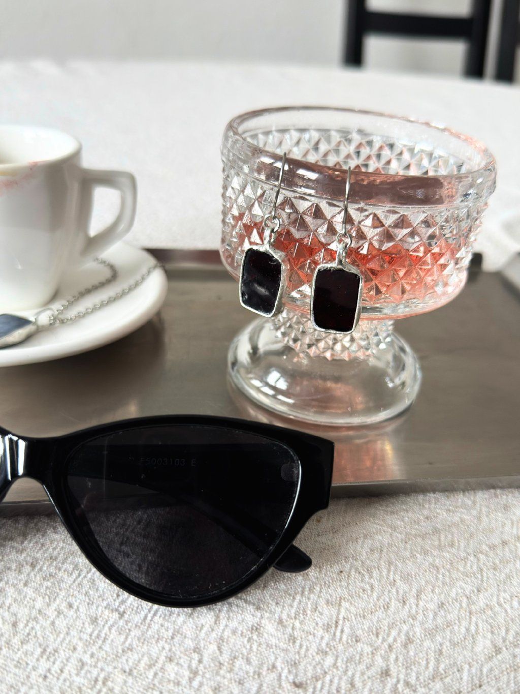 Použité sklo má svou minulost. Nese v sobě jemné nedokonalosti, struktury a odlesky, které by v novém materiálu nikdy nevznikly. Právě tyhle detaily dělají šperk tím, čím je – syrovým, autentickým a přirozeně výrazným. Cín vytváří pevný rám, který fragment drží, ale zároveň ho nechává vyniknout. Upcyklované sklo v kombinaci s cínem vytváří jedinečné artefakty na pomezí šperku a relikvie.