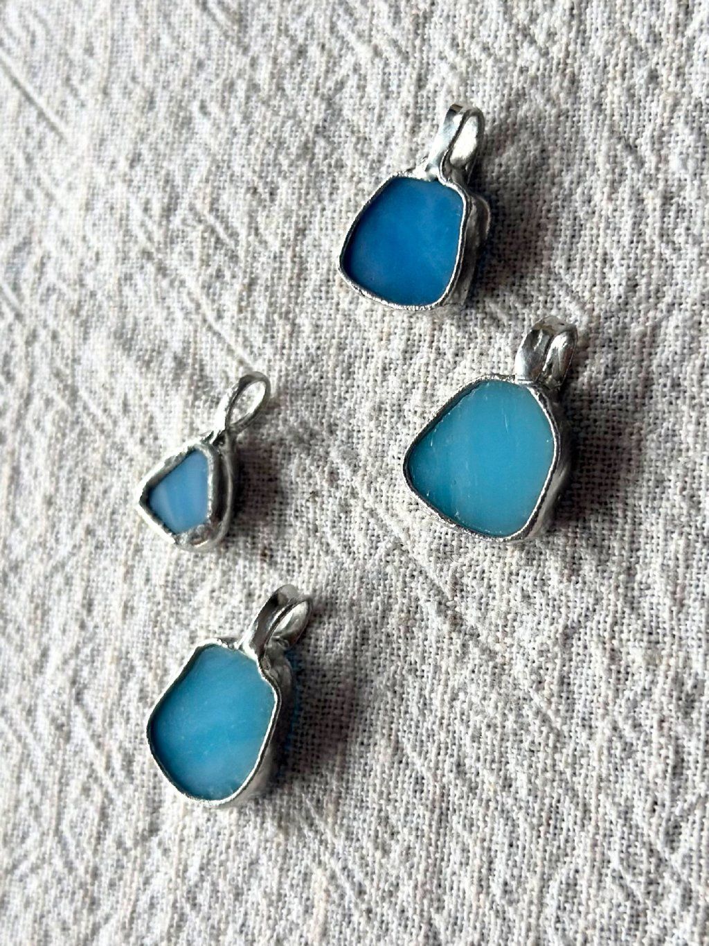 Použité sklo má svou minulost. Nese v sobě jemné nedokonalosti, struktury a odlesky, které by v novém materiálu nikdy nevznikly. Právě tyhle detaily dělají šperk tím, čím je – syrovým, autentickým a přirozeně výrazným. Cín vytváří pevný rám, který fragment drží, ale zároveň ho nechává vyniknout. Upcyklované sklo v kombinaci s cínem vytváří jedinečné artefakty na pomezí šperku a relikvie.