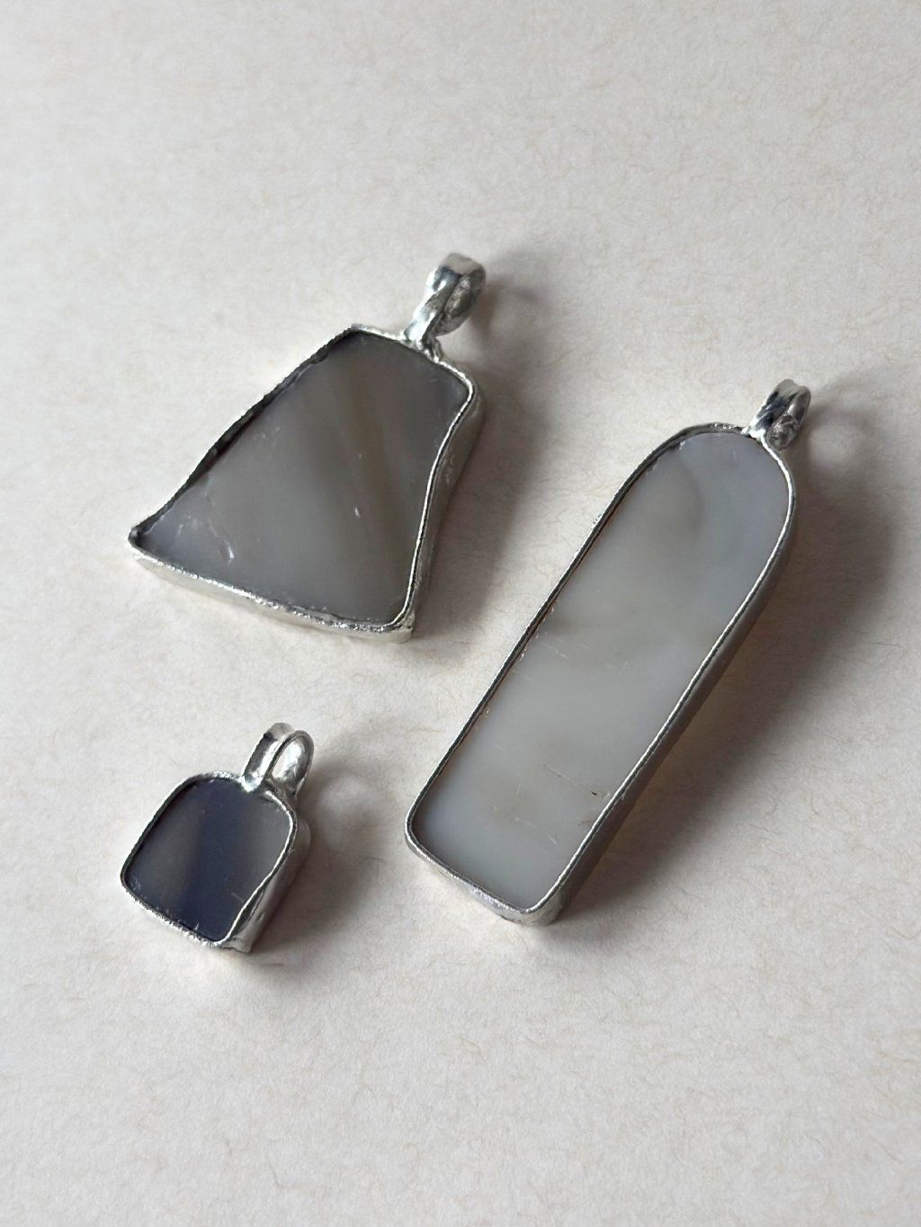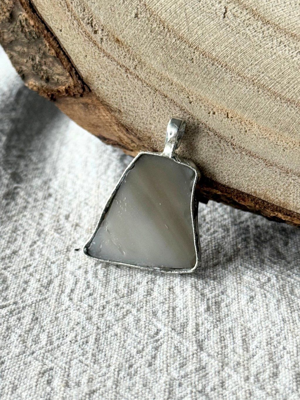 Použité sklo má svou minulost. Nese v sobě jemné nedokonalosti, struktury a odlesky, které by v novém materiálu nikdy nevznikly. Právě tyhle detaily dělají šperk tím, čím je – syrovým, autentickým a přirozeně výrazným. Cín vytváří pevný rám, který fragment drží, ale zároveň ho nechává vyniknout. Upcyklované sklo v kombinaci s cínem vytváří jedinečné artefakty na pomezí šperku a relikvie.