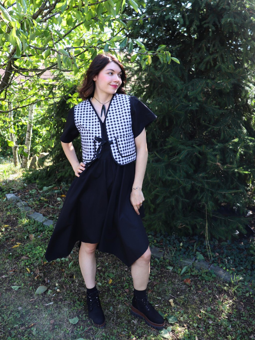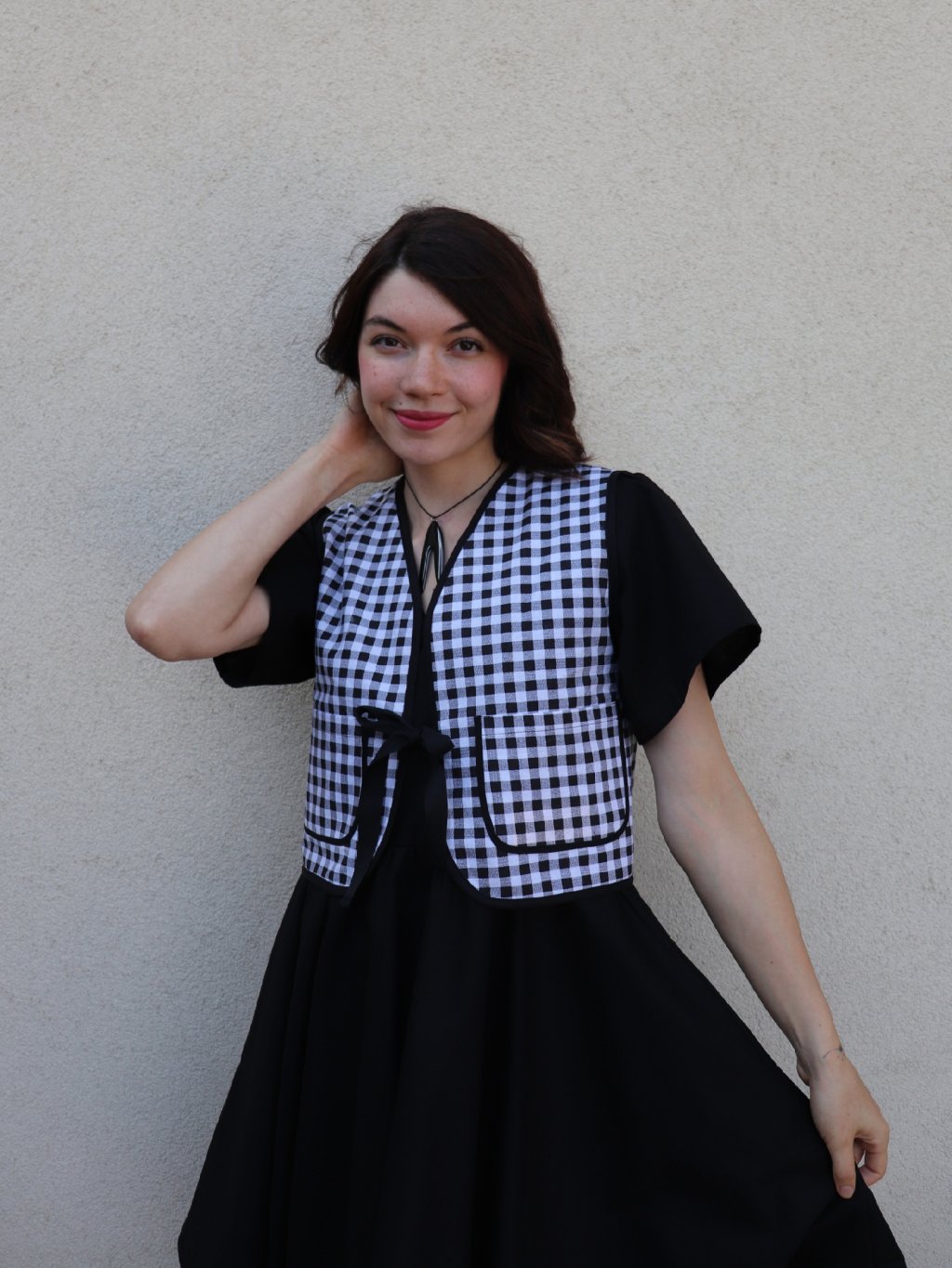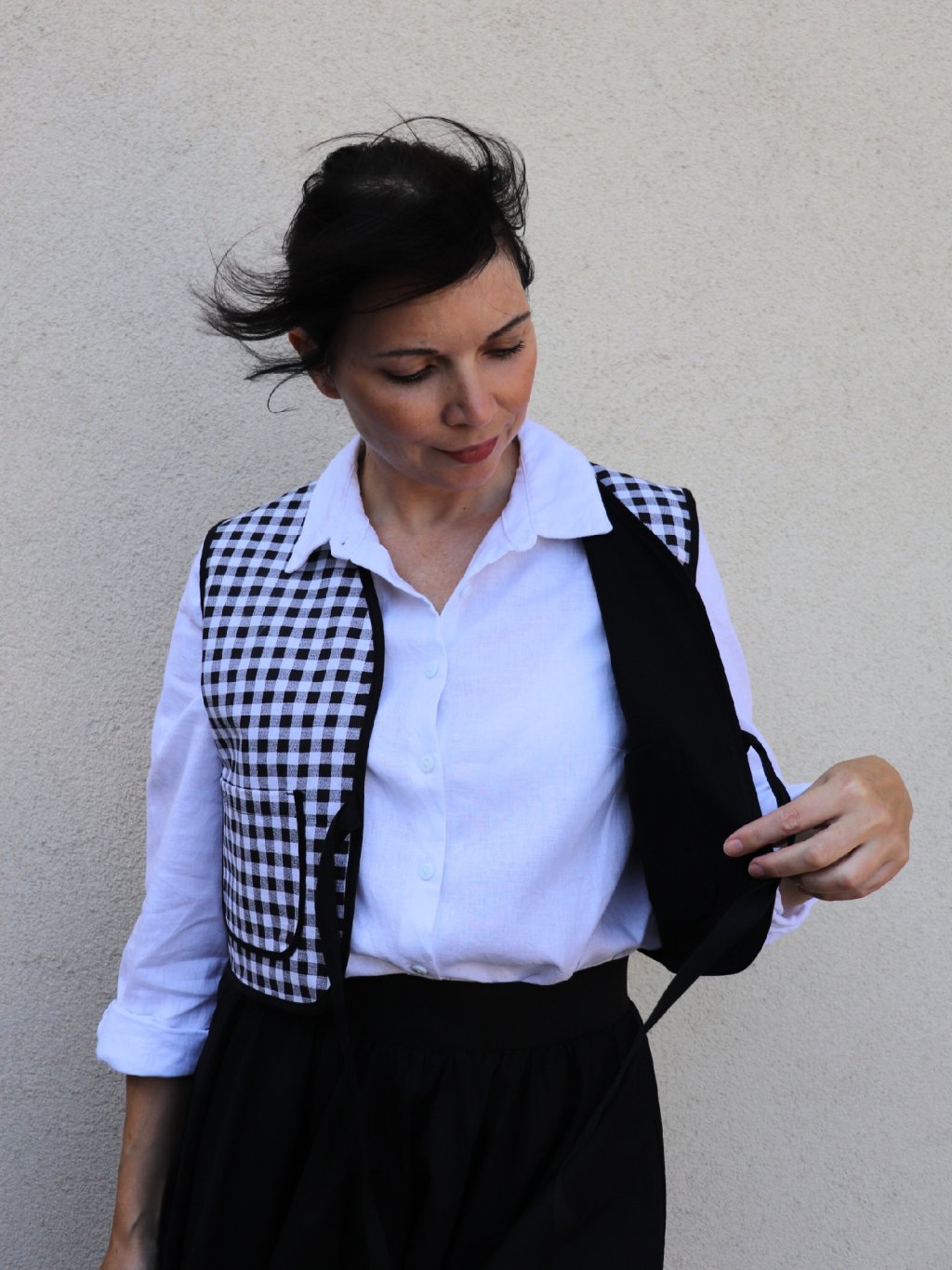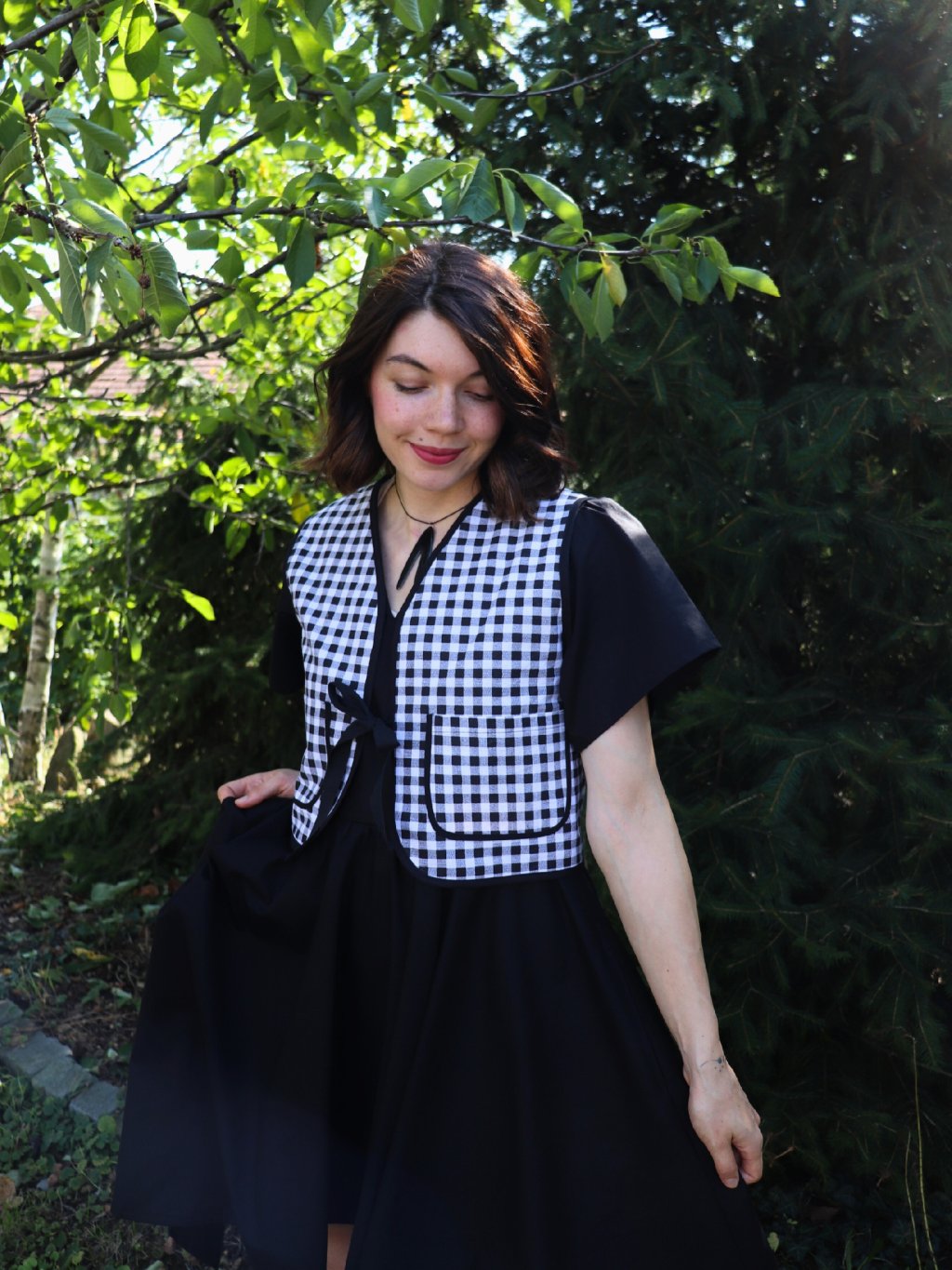 Dámská oboustranná vesta - černá a černobílé káro