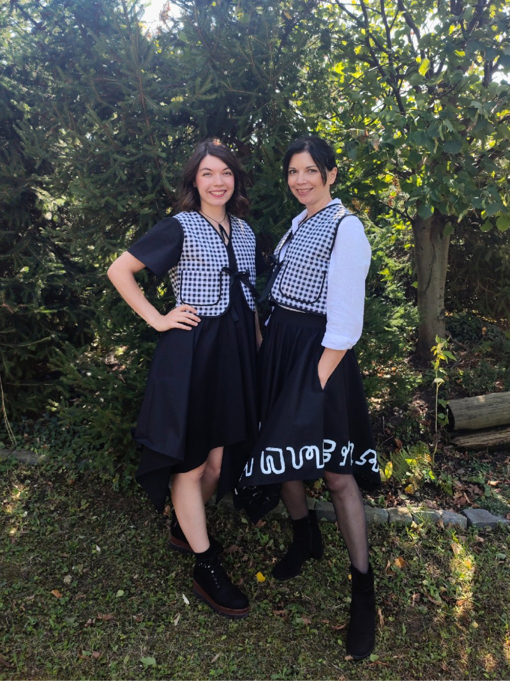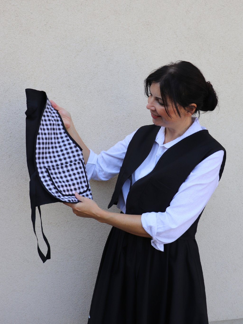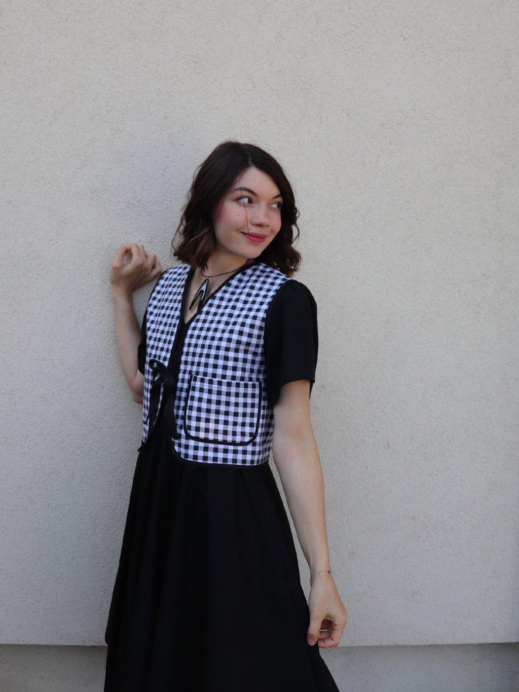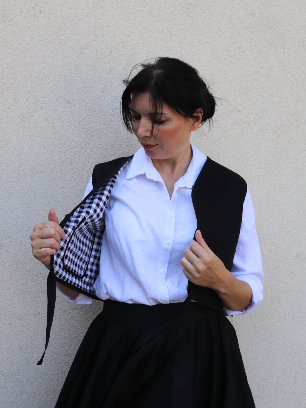 Dámská oboustranná vesta - černá a černobílé káro
