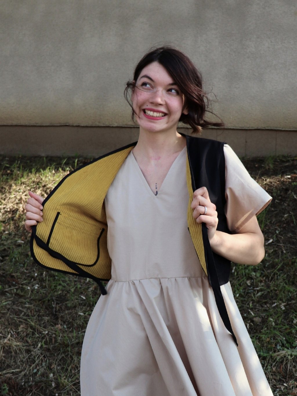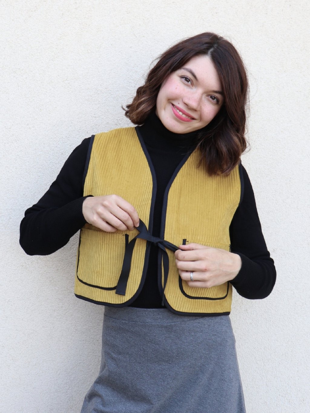 Vesta šitá s láskou v naší dílně z přírodní (bio) bavlny, která je prodyšná a příjemná na nošení. Materiál zajišťuje pohodlí po celý den, ať už vestu nosíte jako stylový doplněk přes šaty nebo košili.