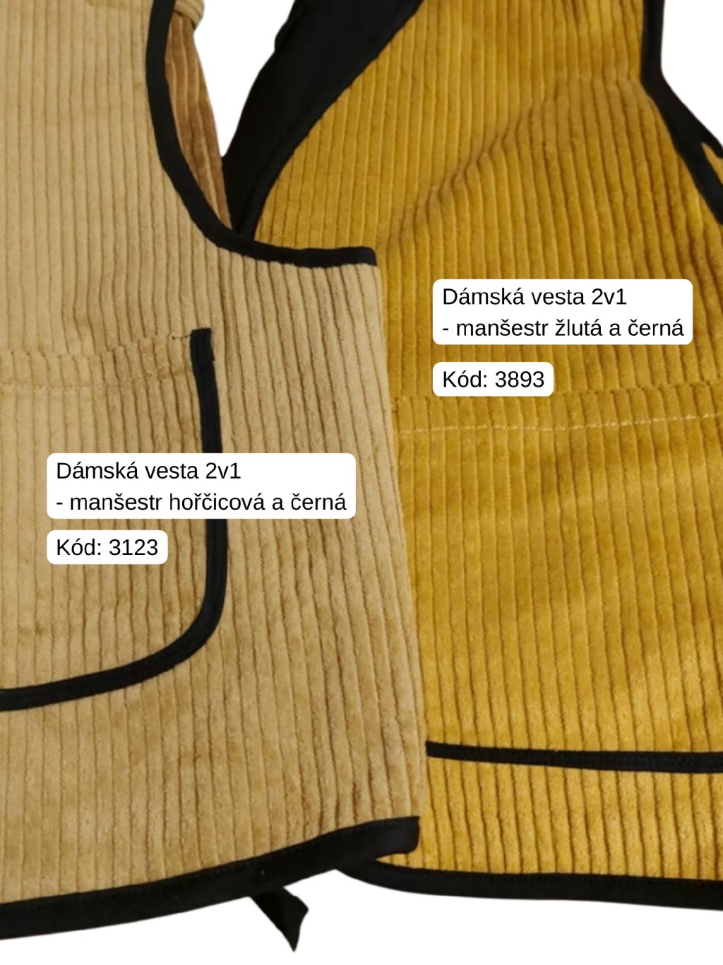 Dámská oboustranná vesta - manšestr hořčicová a černá