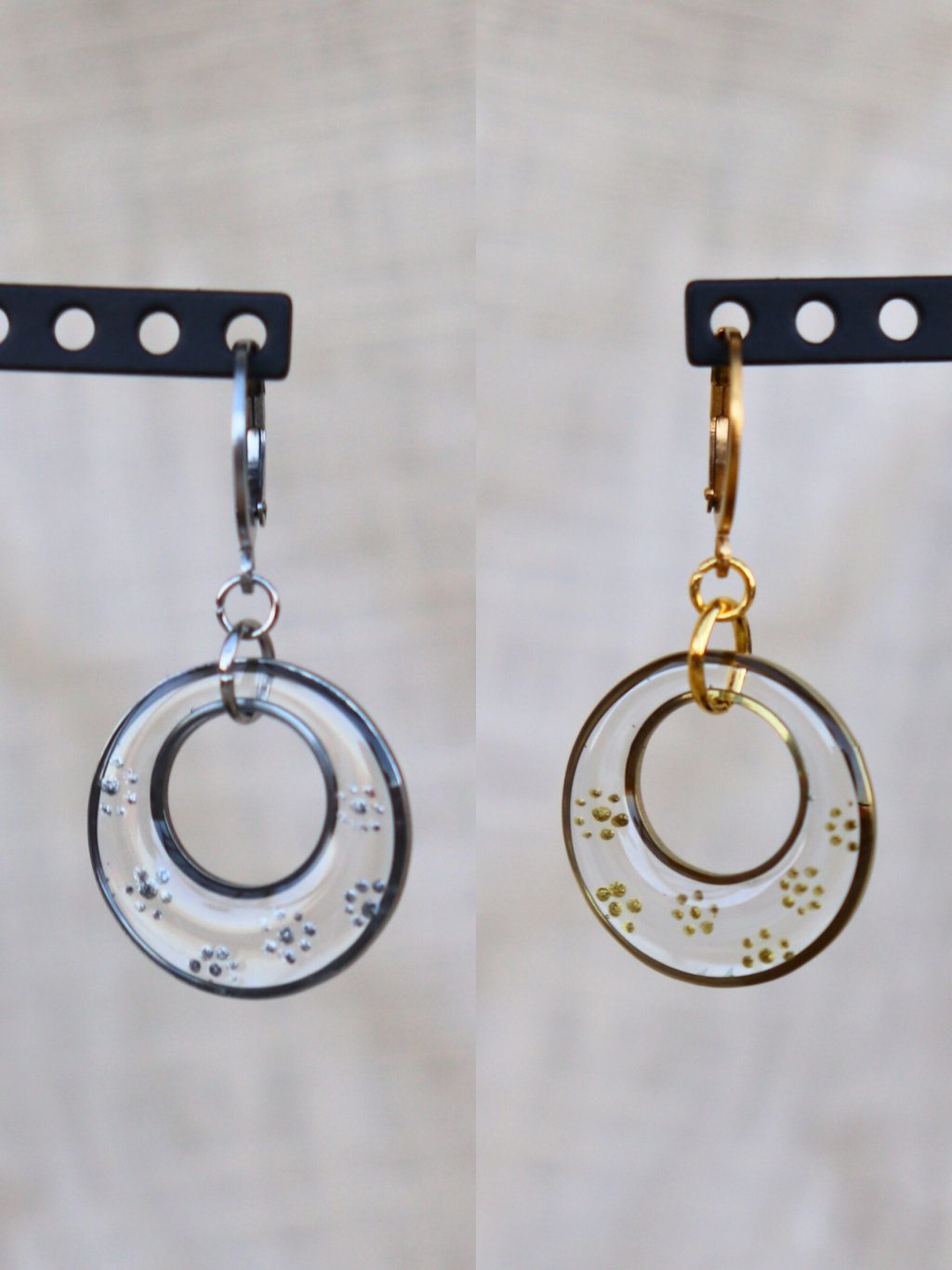 Kruhové náušnice - průhledné kytičky zlatá a stříbrná