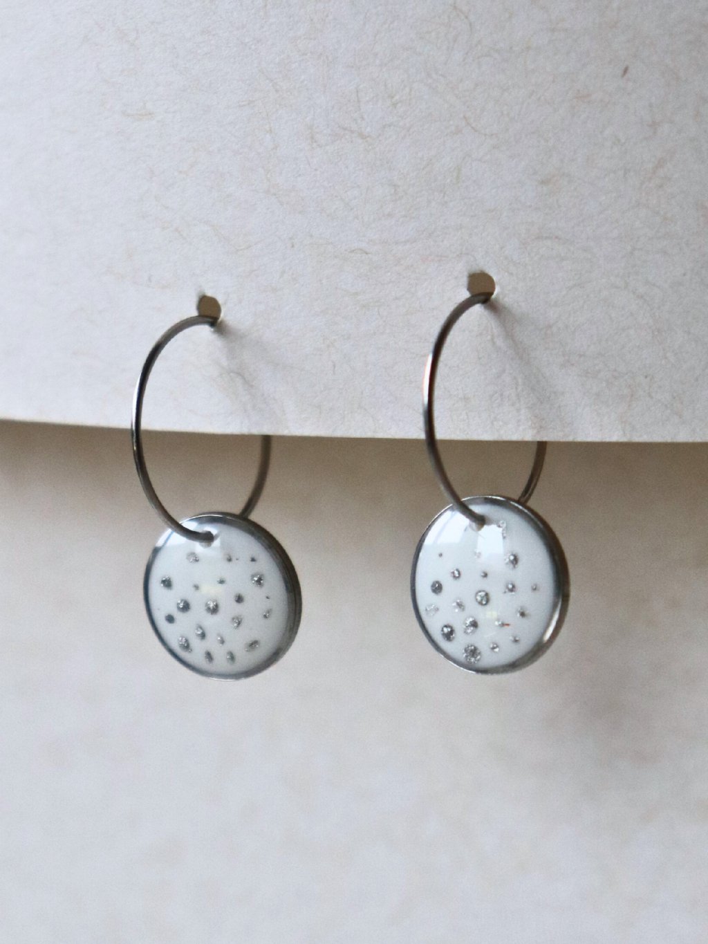 Elegantní roztomilé náušnice - visací kruhové malé. Ručně odlévané, malované a vyrobené v naší dílně na Moravě.