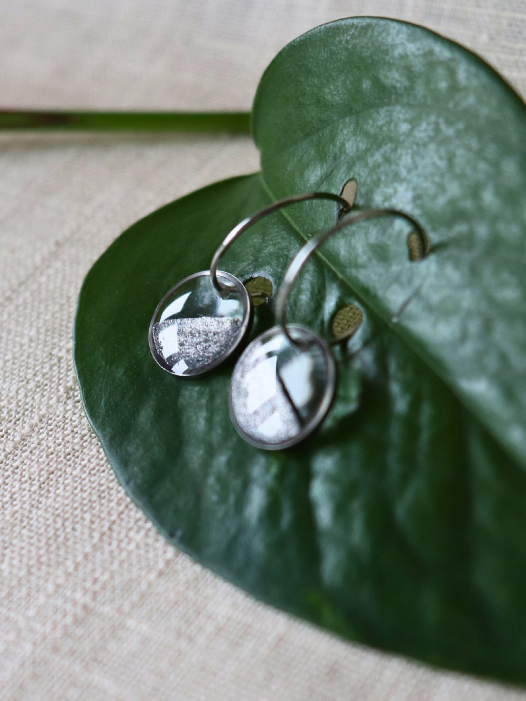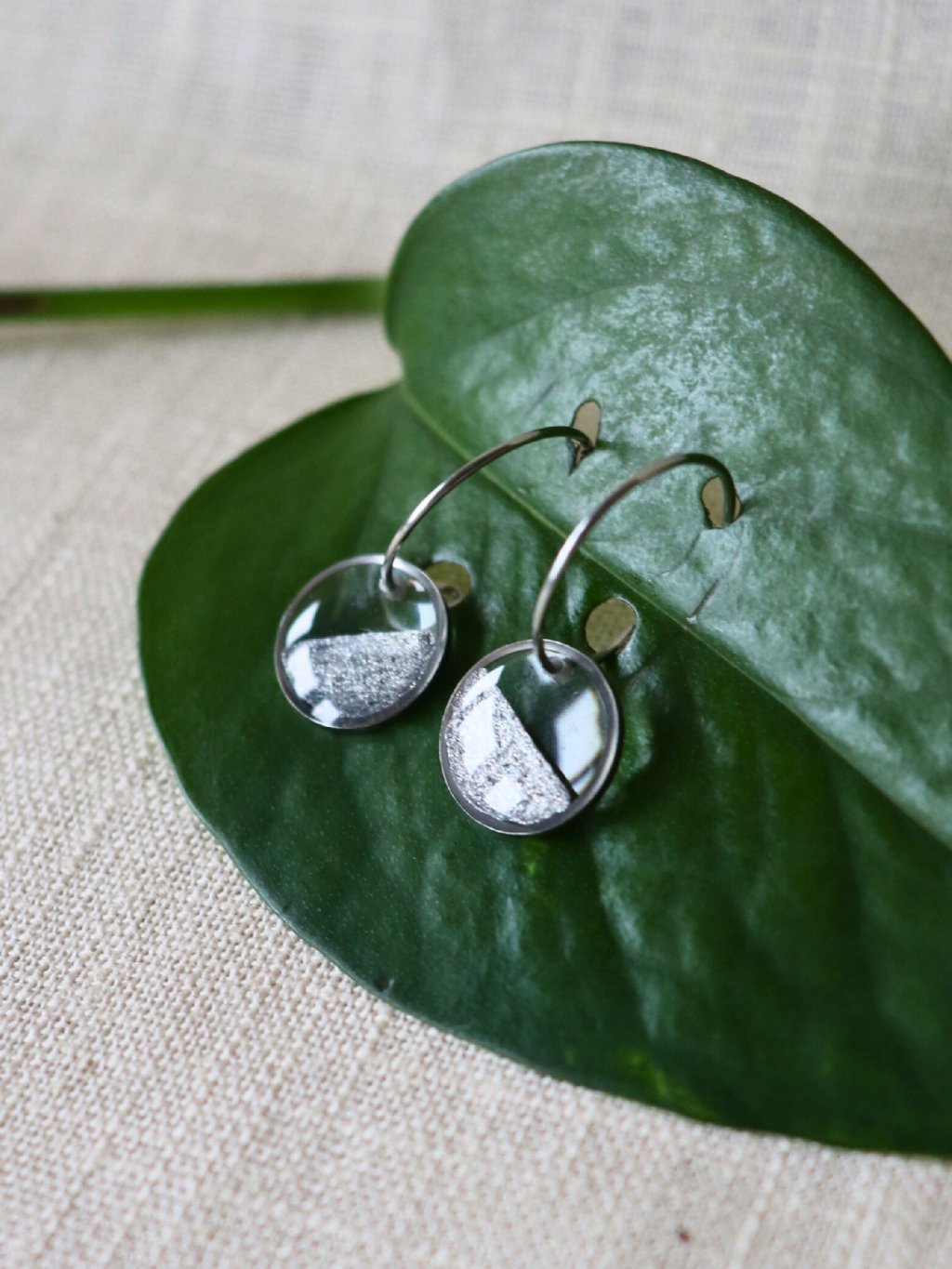 Elegantní roztomilé náušnice - visací kruhové malé. Ručně odlévané, malované a vyrobené v naší dílně na Moravě.