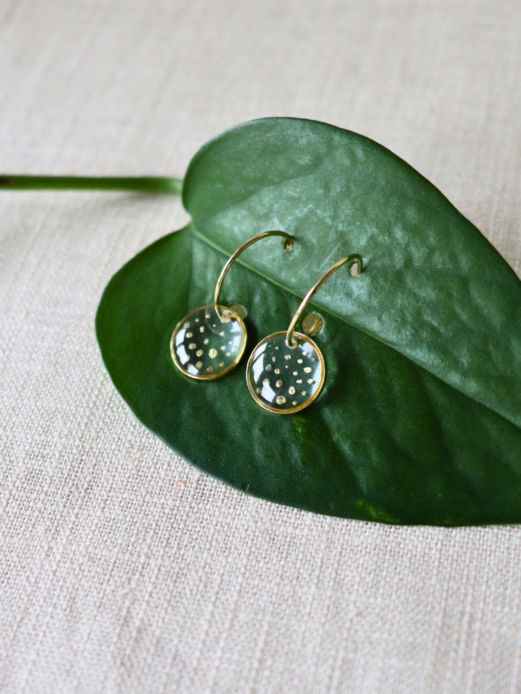 Elegantní roztomilé náušnice - visací kruhové malé. Ručně odlévané, malované a vyrobené v naší dílně na Moravě.