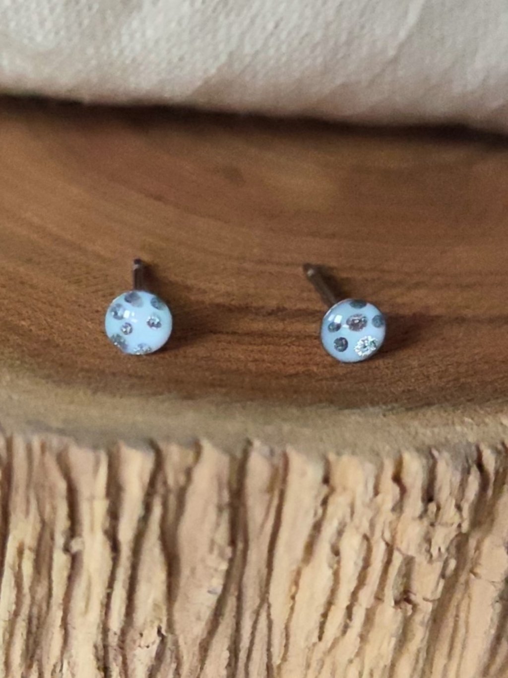Mini pecky s bílými a stříbrnými puntíky jsou ideální volbou pro ty, kdo mají rádi jednoduchost s nápaditým akcentem. Ručně malované v našem rodinném ateliéru na Moravě, působí jemně a hravě zároveň. Díky průměru pouhých 0,4 cm jsou nenápadné, ale v uchu přesto krásně vyniknou.