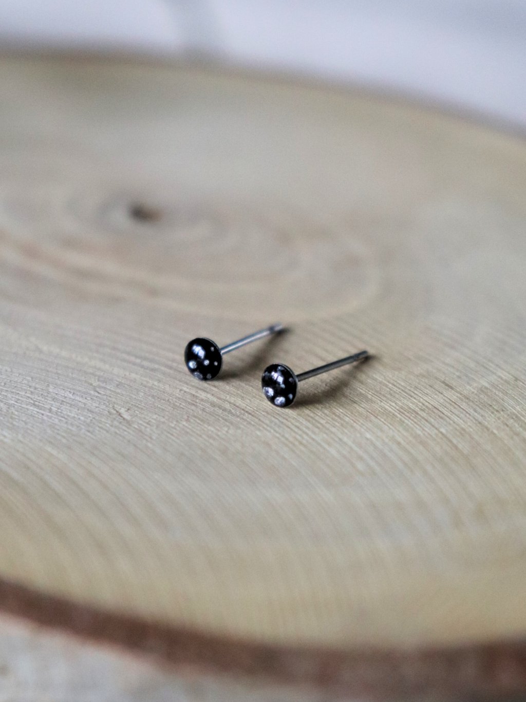 Elegantní mini pecky (0,4 cm) v černé a stříbrné kombinaci – minimalistické, stylové a nadčasové.