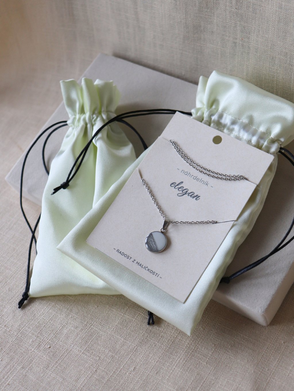 Náhrdelníky jsme vyrobili v našem rodinném ateliéru na Moravě.
