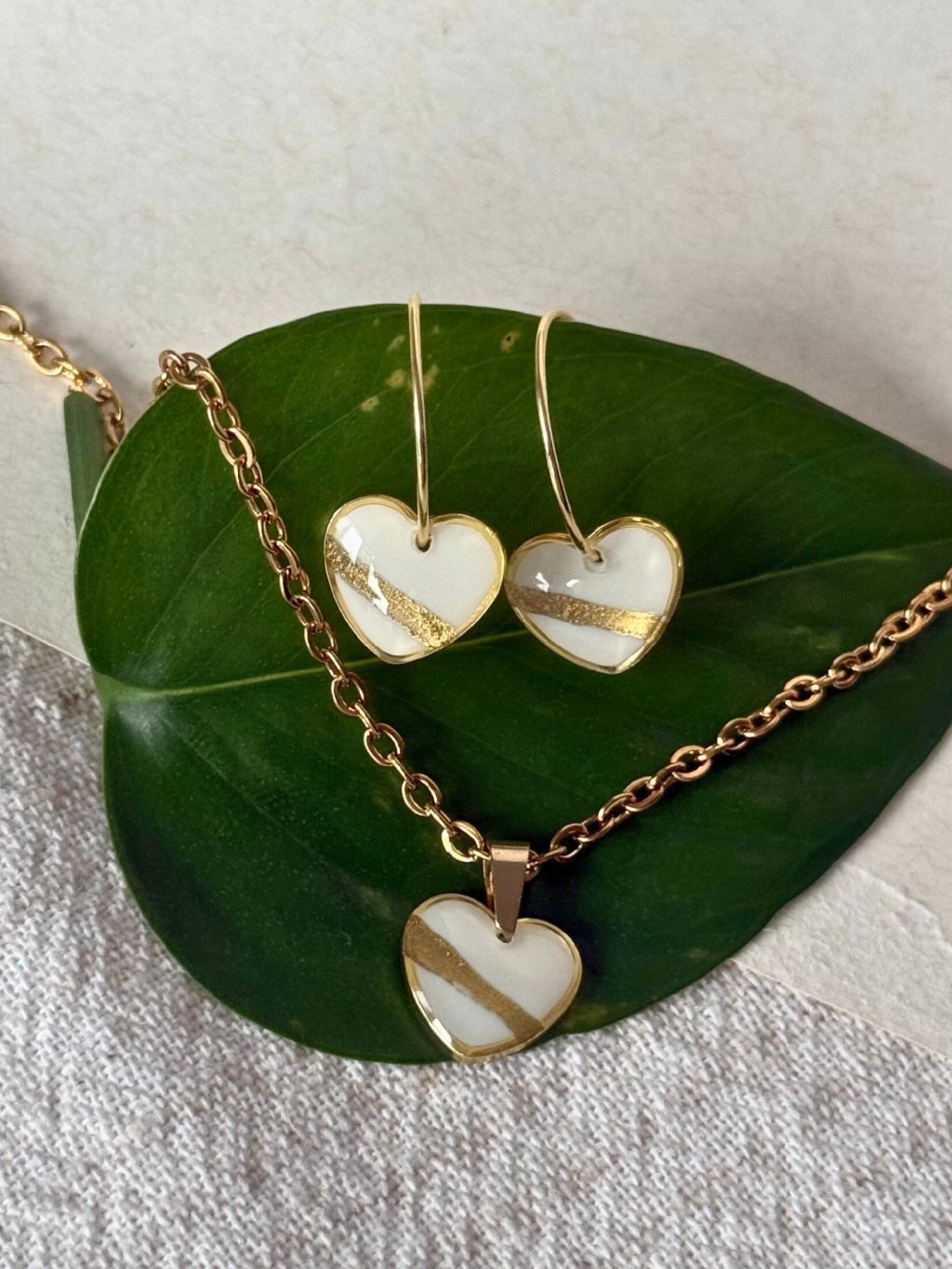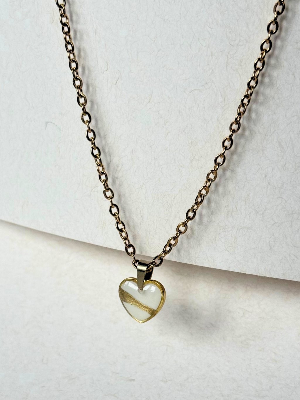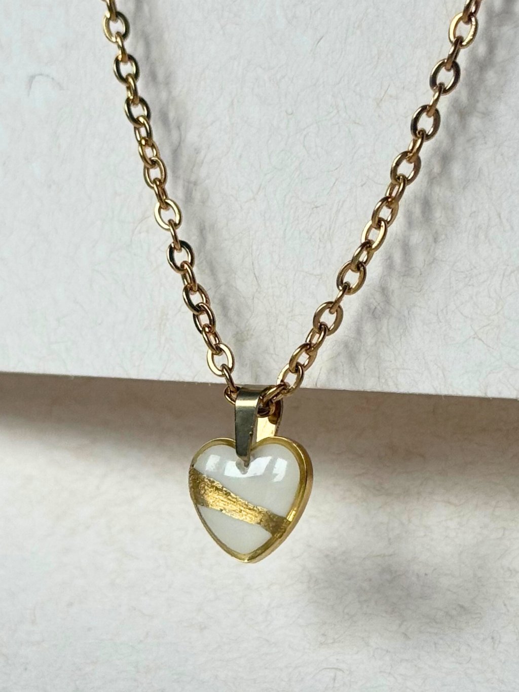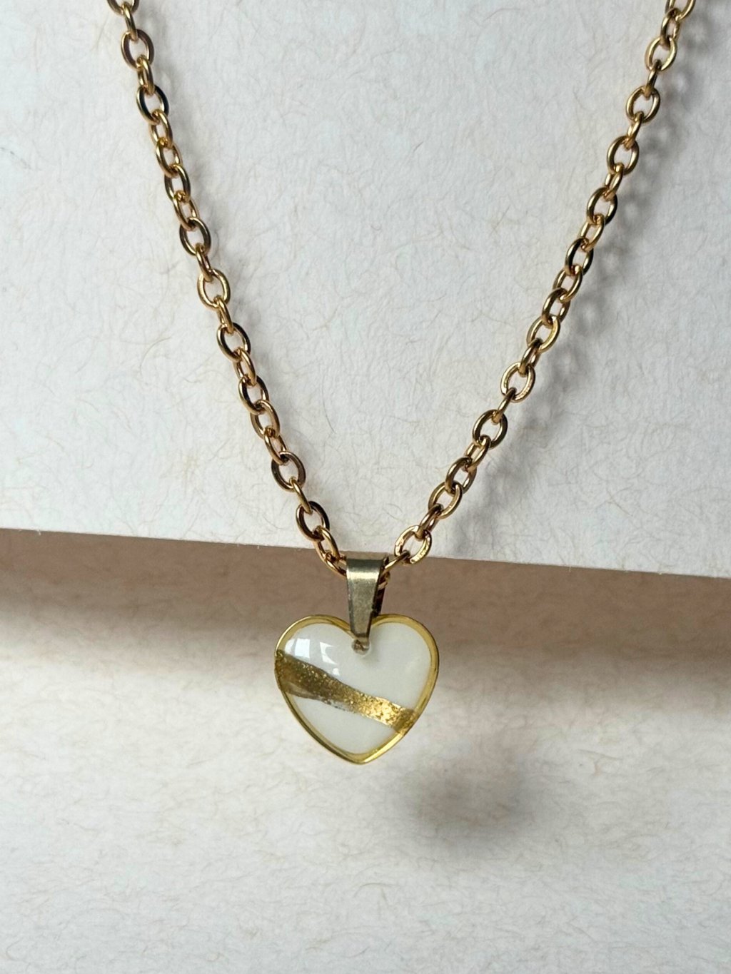 Náhrdelník srdíčko - bílá a zlatá čárka