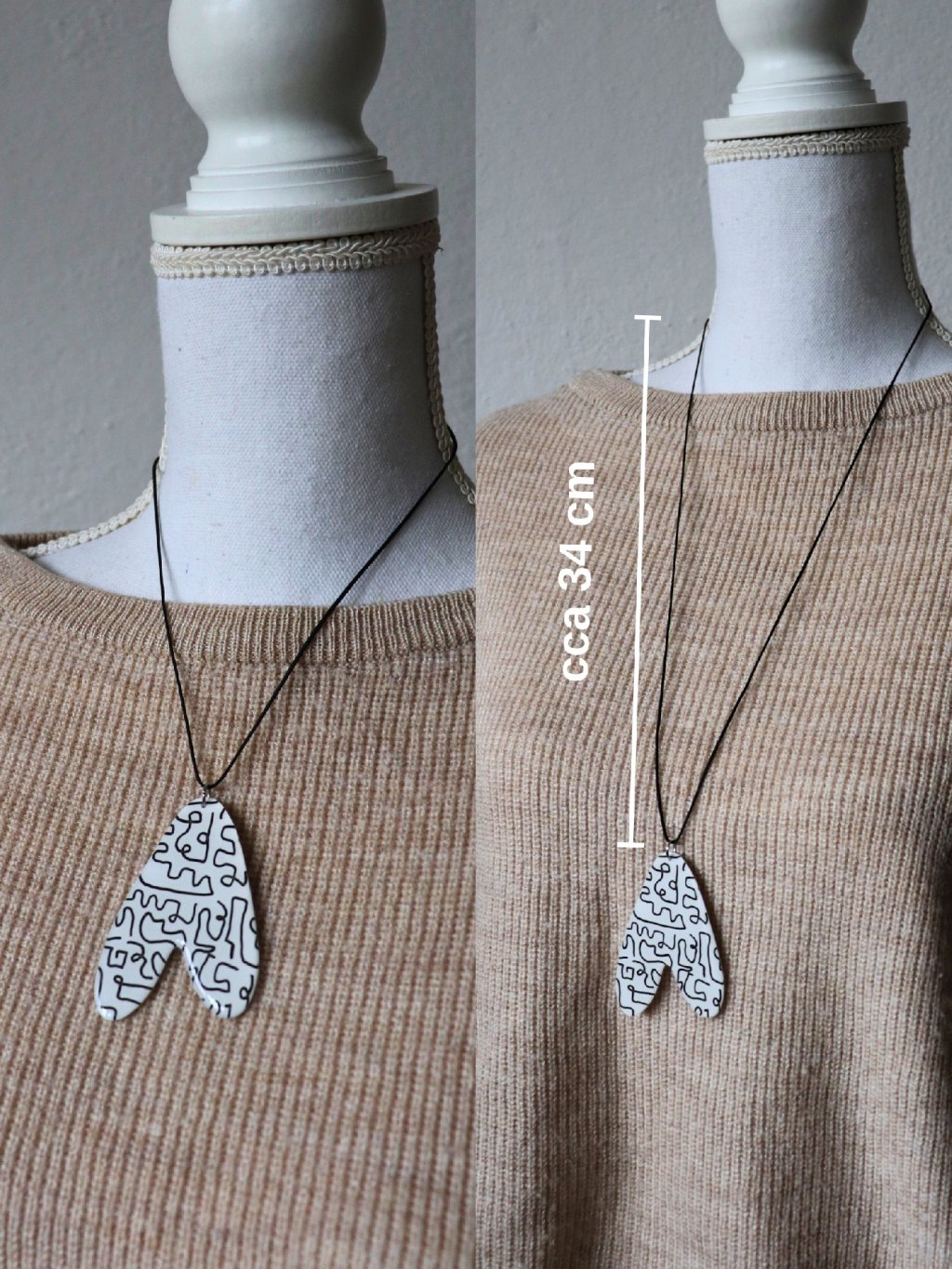 Geometrický designový náhrdelník bílý s černým vzorem Počmaraná.