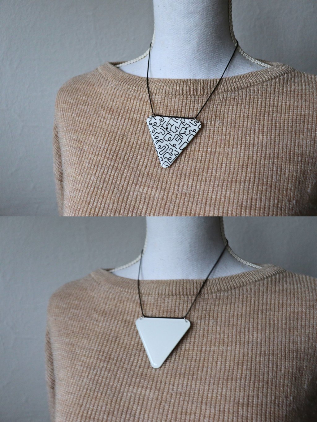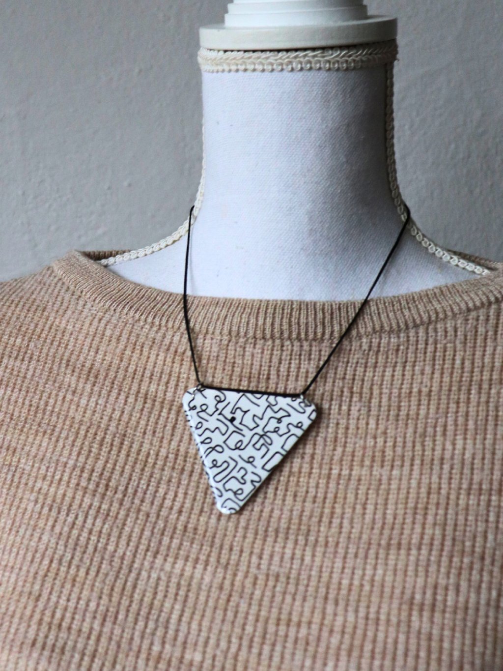 Trojúhelníkový černobílý náhrdelník na krk se vzorem
