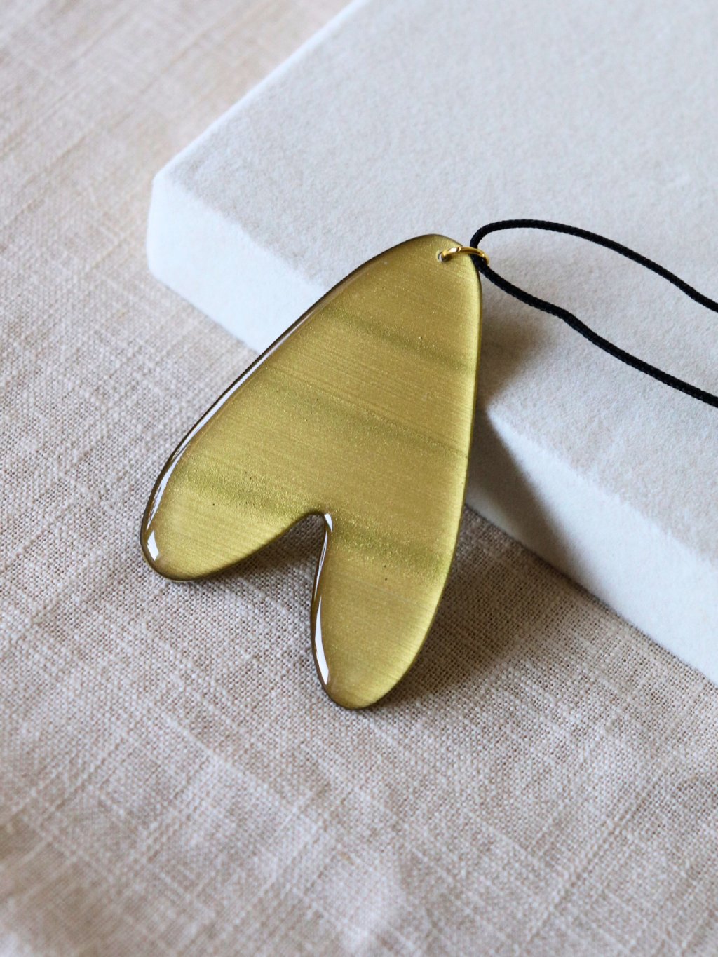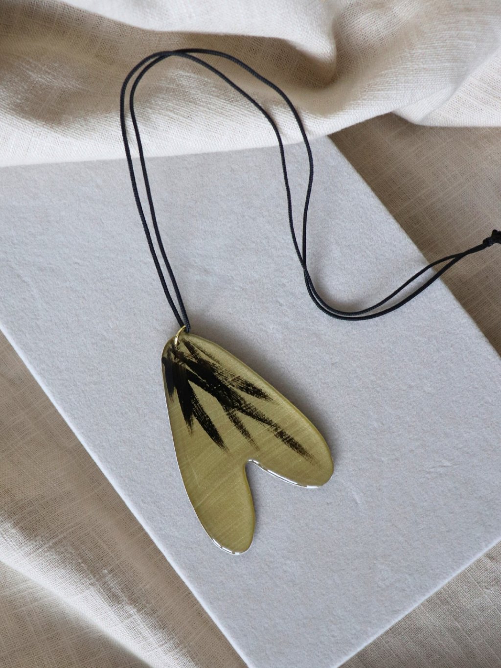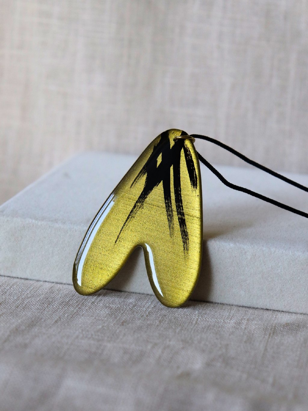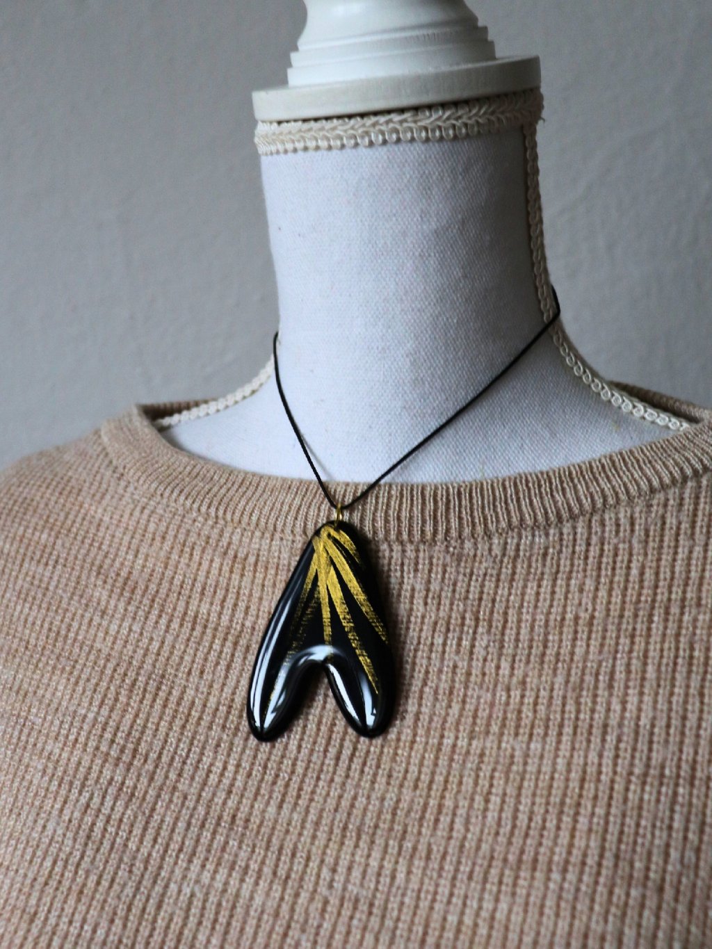 Materiál: pryskyřice, nerezová ocel, polyesterový provázek