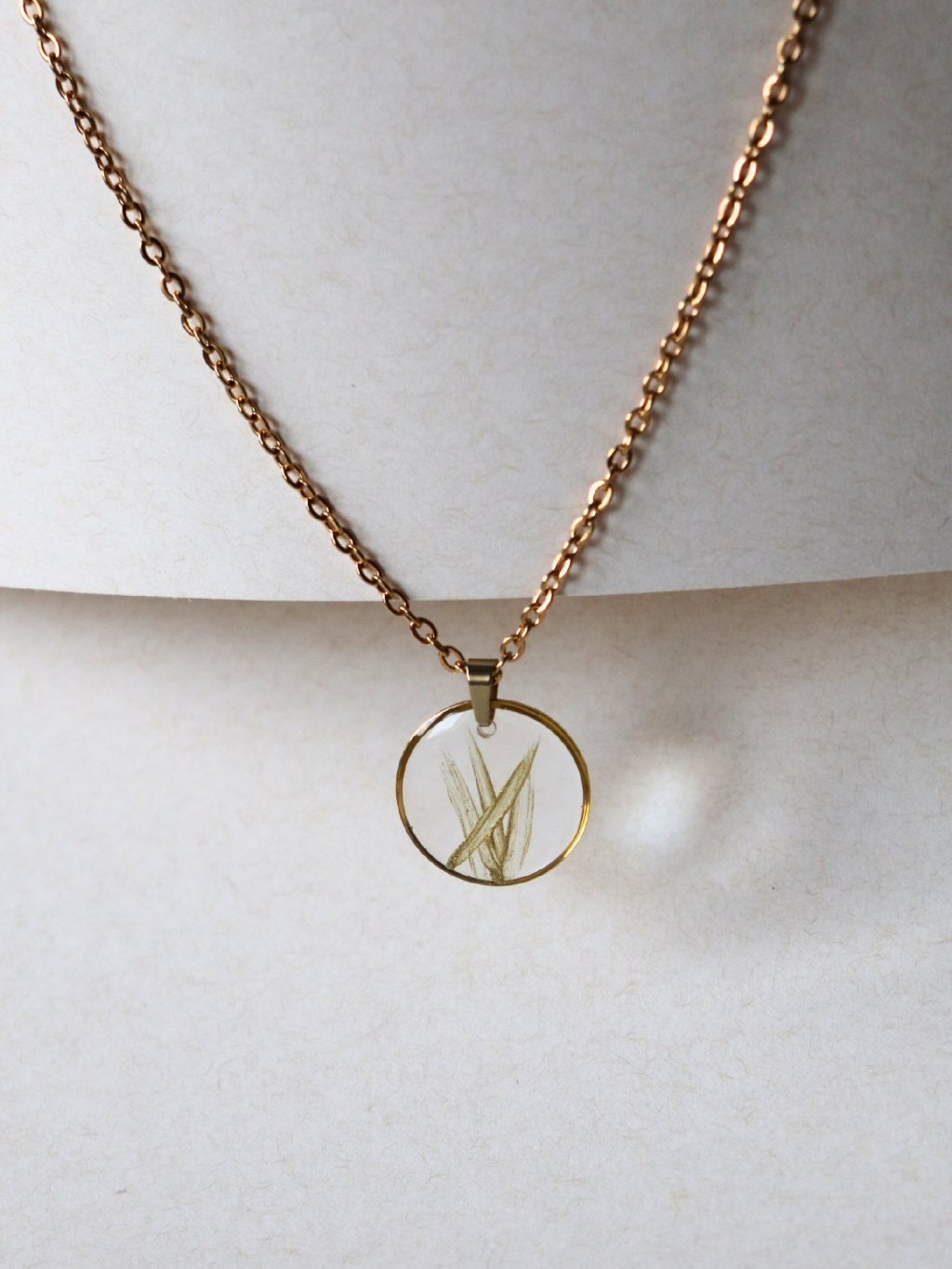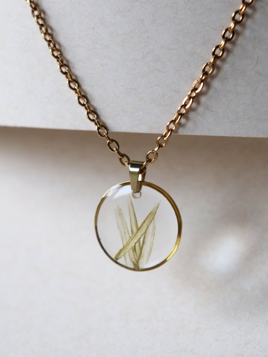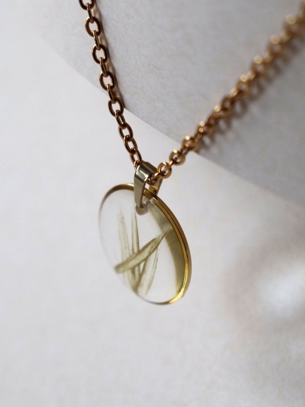 Kulatý zlatý ocelový průhledný náhrdelník s tahy.