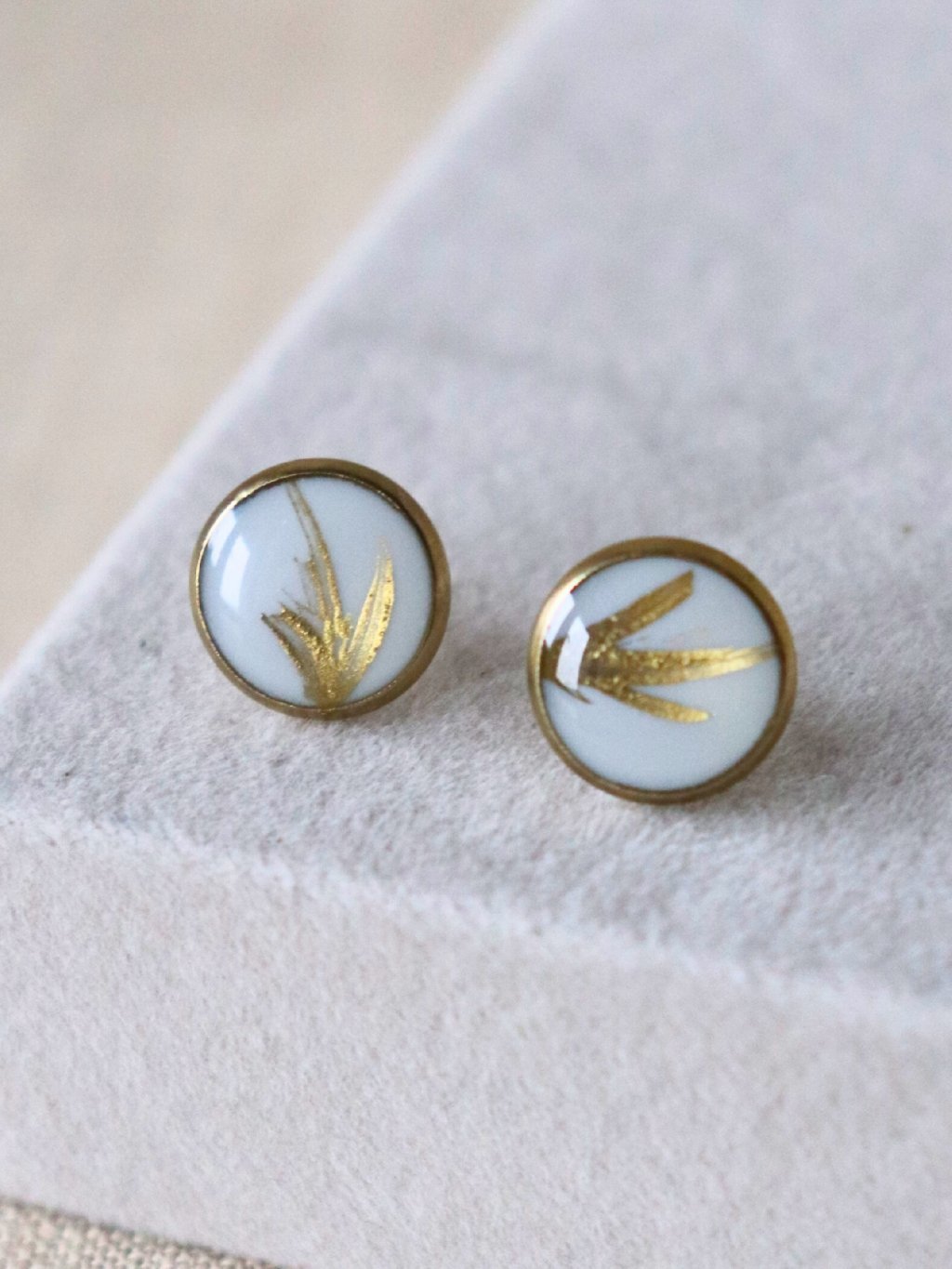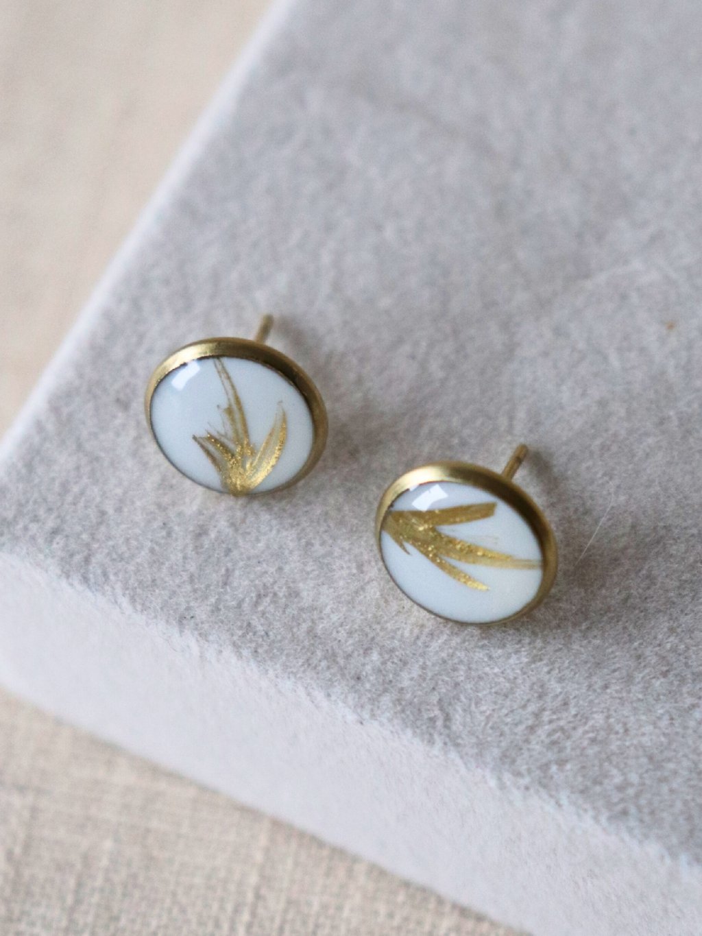 Ručně malované pecičky s tahy štětce, vyrobené z pryskyřice a nerezové oceli. Náušnice jsme vyrobili v našem rodinném ateliéru na Moravě.