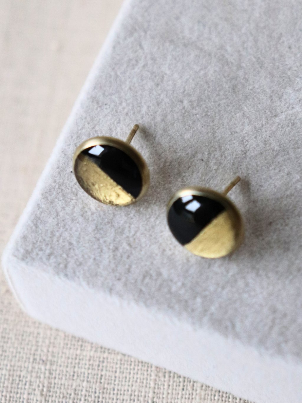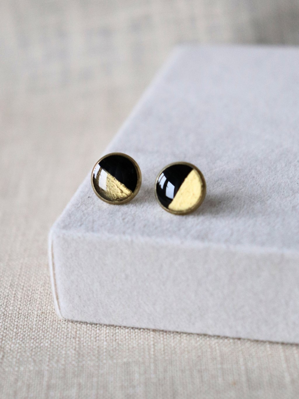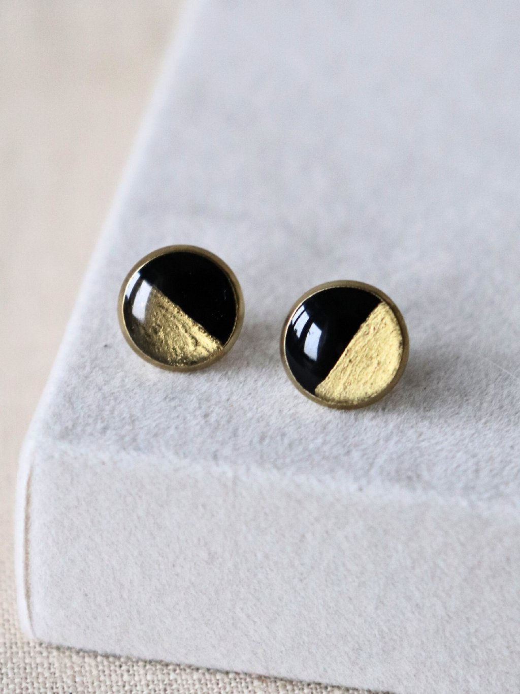 Ručně malované geometrické pecičky, vyrobené z pryskyřice a nerezové oceli. Náušnice jsme vyrobili v našem rodinném ateliéru na Moravě.