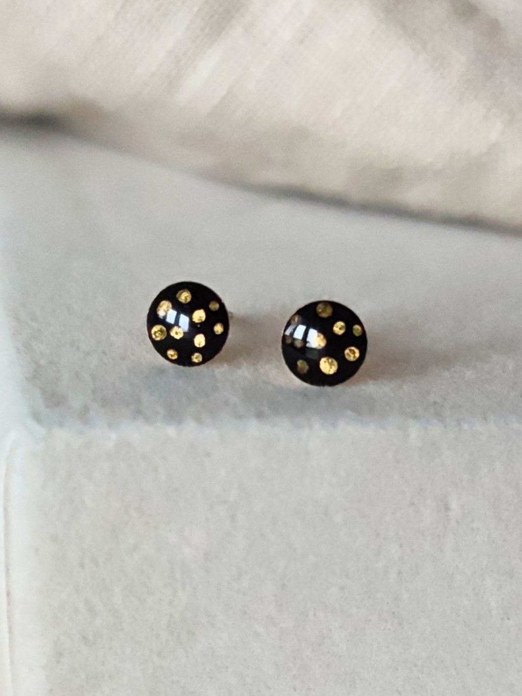 Drobné 6 mm velké náušnice v kombinaci černé a zlaté barvy.