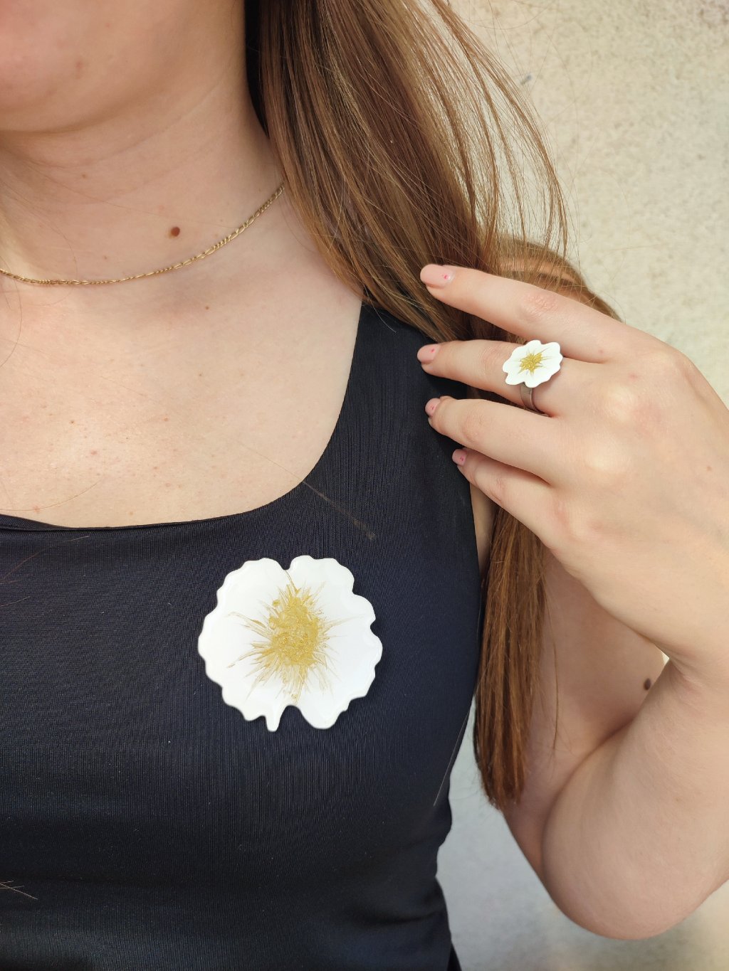 Prsteny jsou vyladěné k broži a několika druhům náušnic ze stejné květinové kolekce. Nebojte se kombinovat!