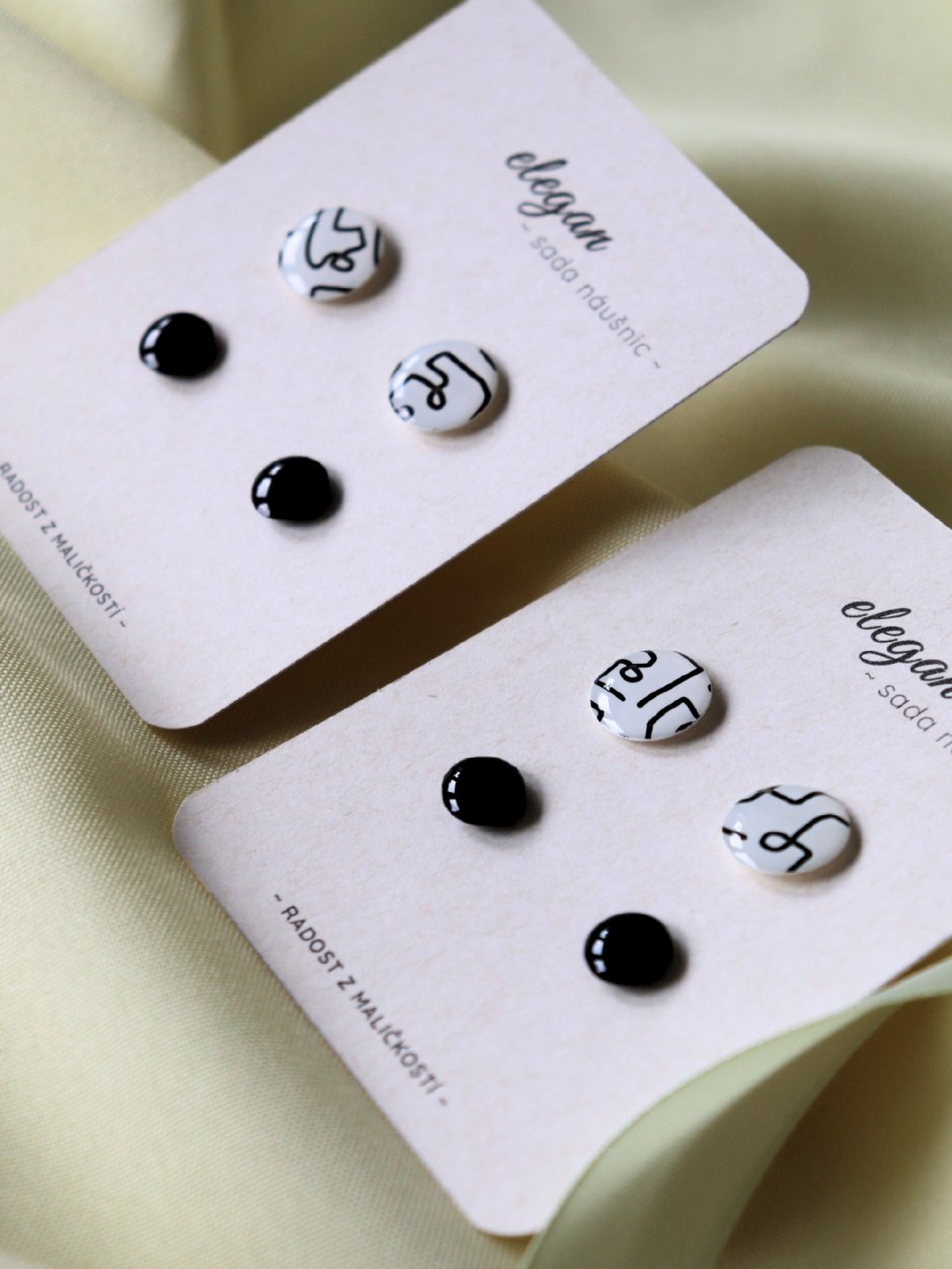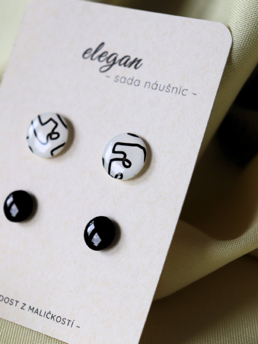 Sada pecek - ručně malované bílé pecky a jednobarevné černé pecky