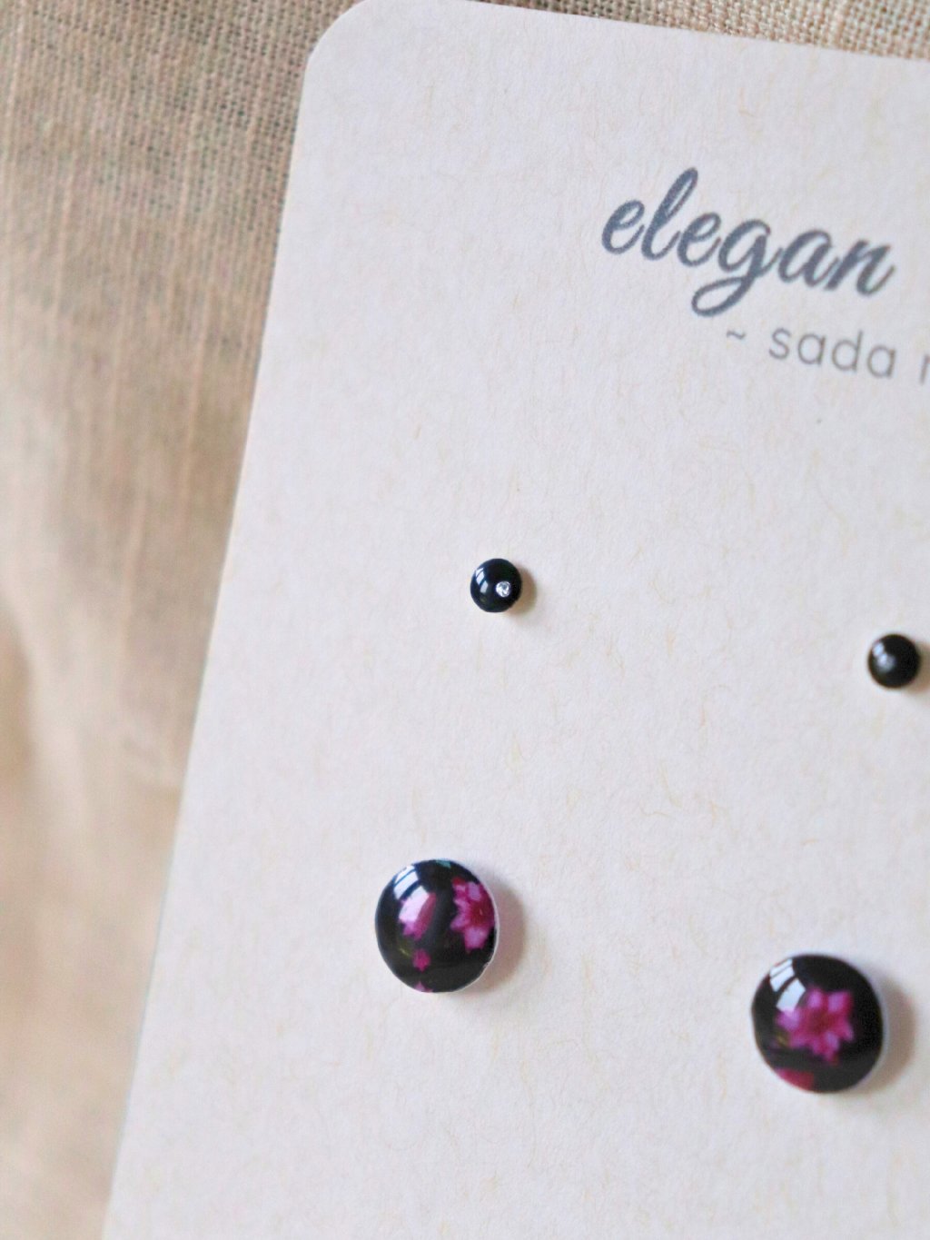 Sada náušnic - černá Květka a stříbrná tečka