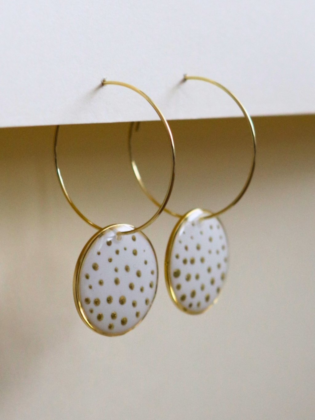 Velké kruhové náušnice v kombinaci zlaté a bílé barvy. Elegantní a velice jemné, i přestože jsou větší.