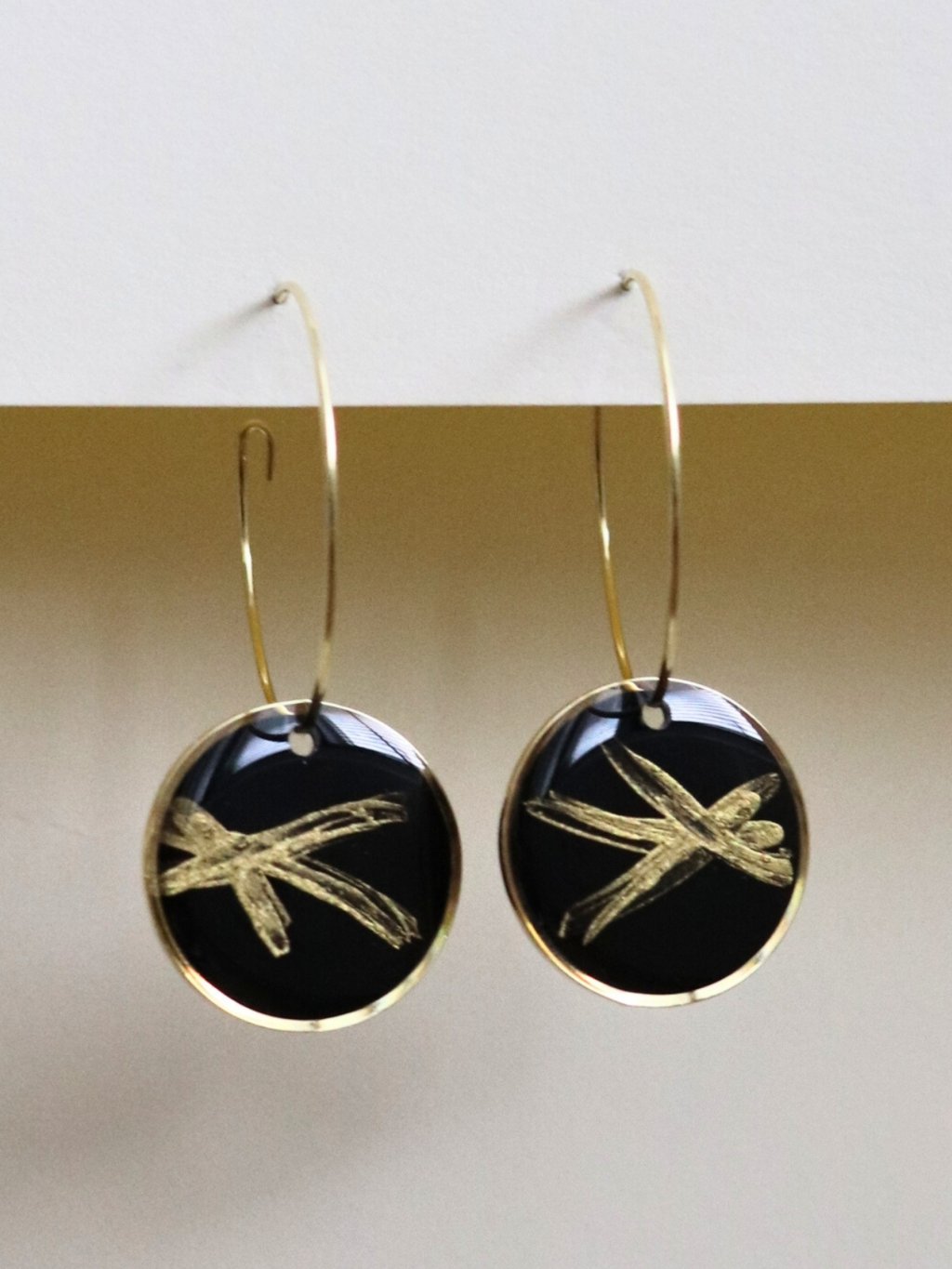 Velké visací náušnice - černá a zlatá tahy
