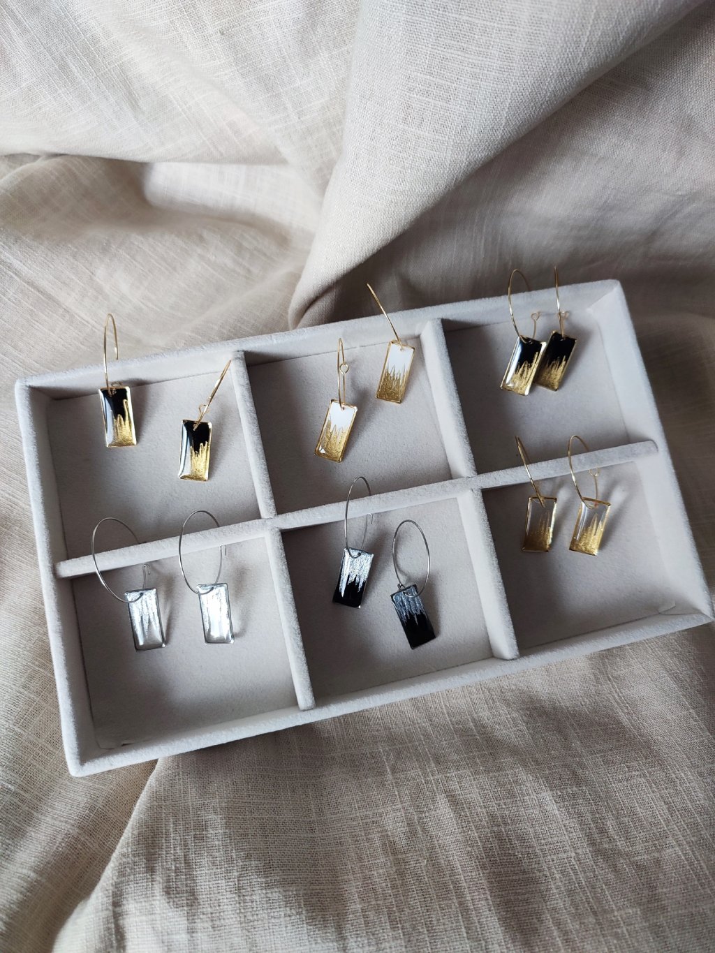 Každý kousek je naprostý originál a projde nám několikrát pod rukama, než se dostane až k vám. Díky tomu jednotlivé kousky nikdy nebudou úplně stejné, je třeba s tím počítat. :-) Foto na uchu je ilustrační. Uvedená cena je za pár.