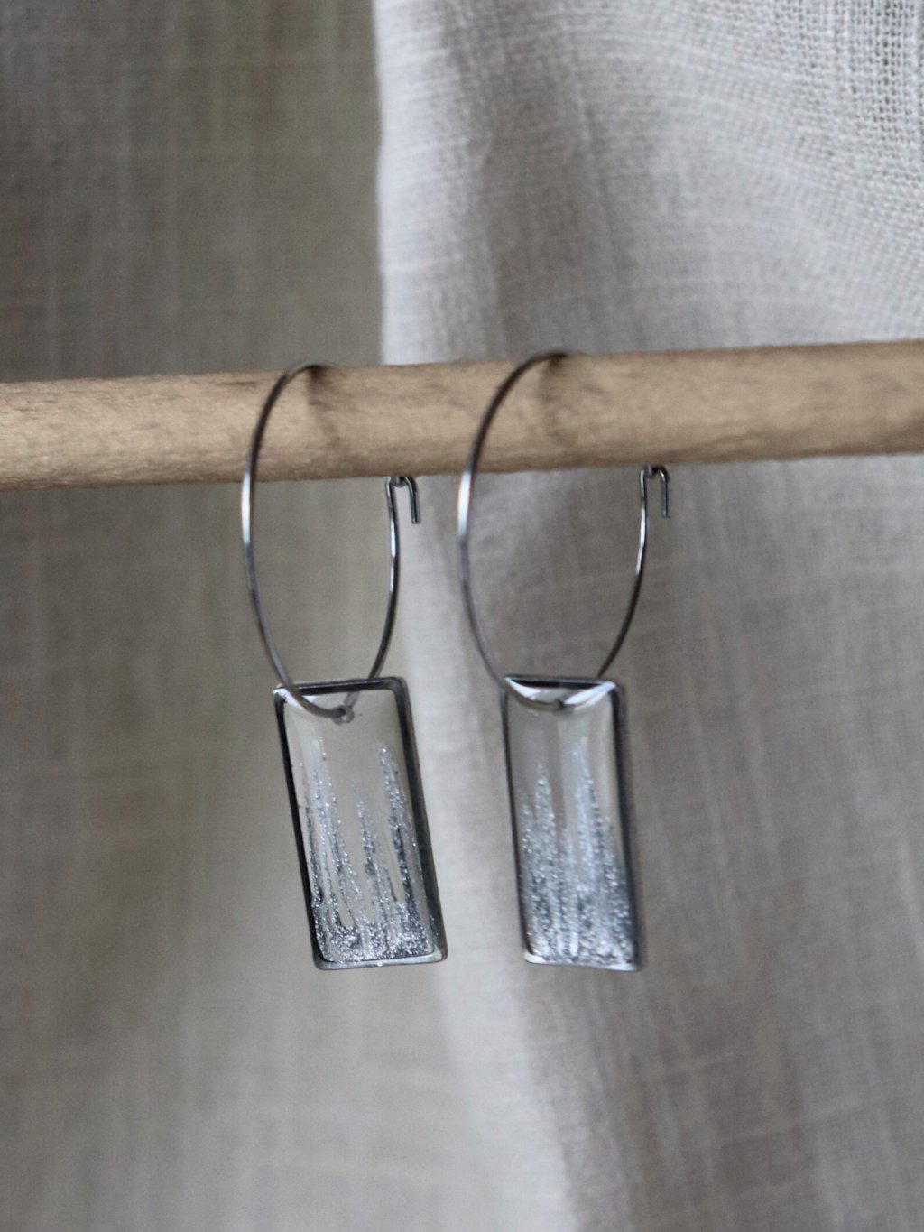 Velké visací náušnice obdélník - průhledná a stříbrná