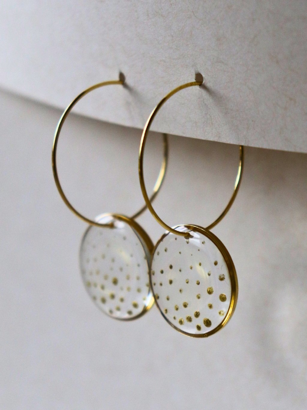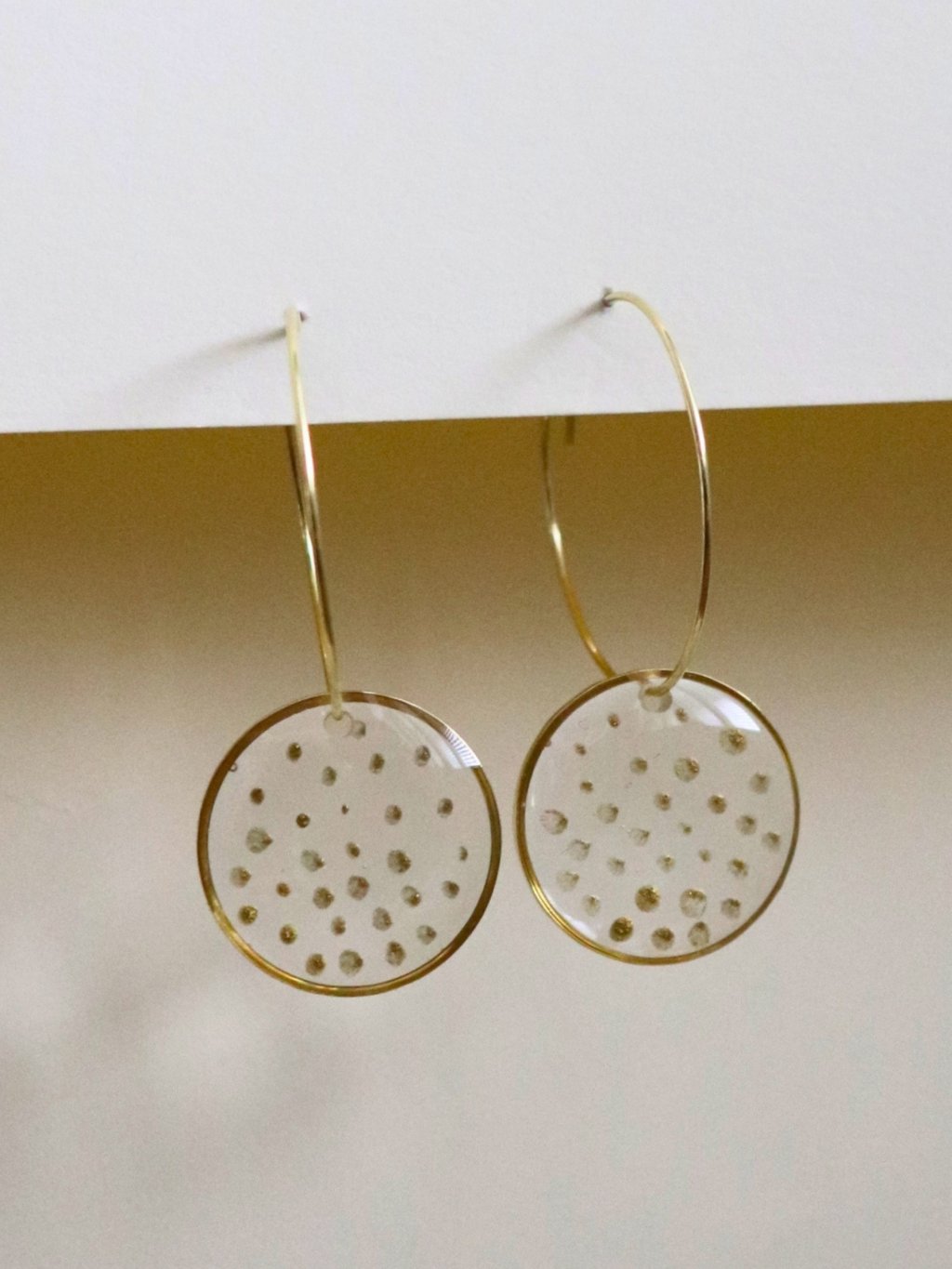 Velké visací náušnice - průhledná a zlatá puntíky