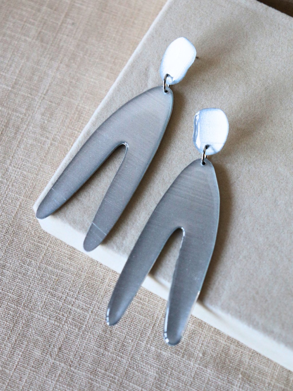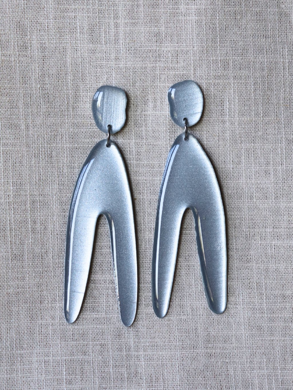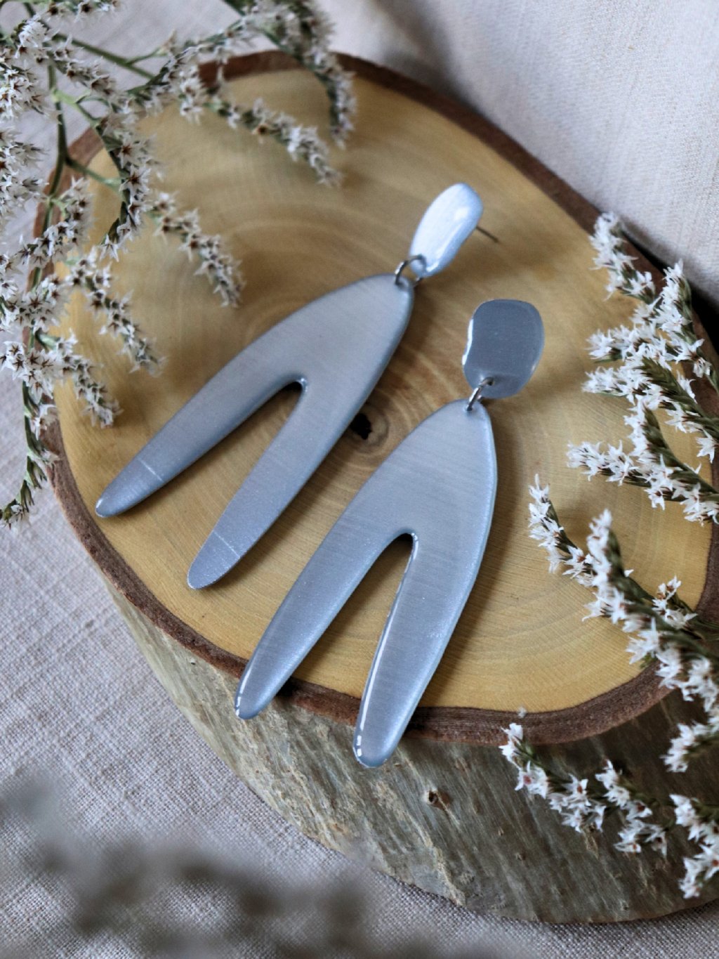 Lesklá stříbrná dlouhá náušnice, která si hraje s odlesky a světlem.