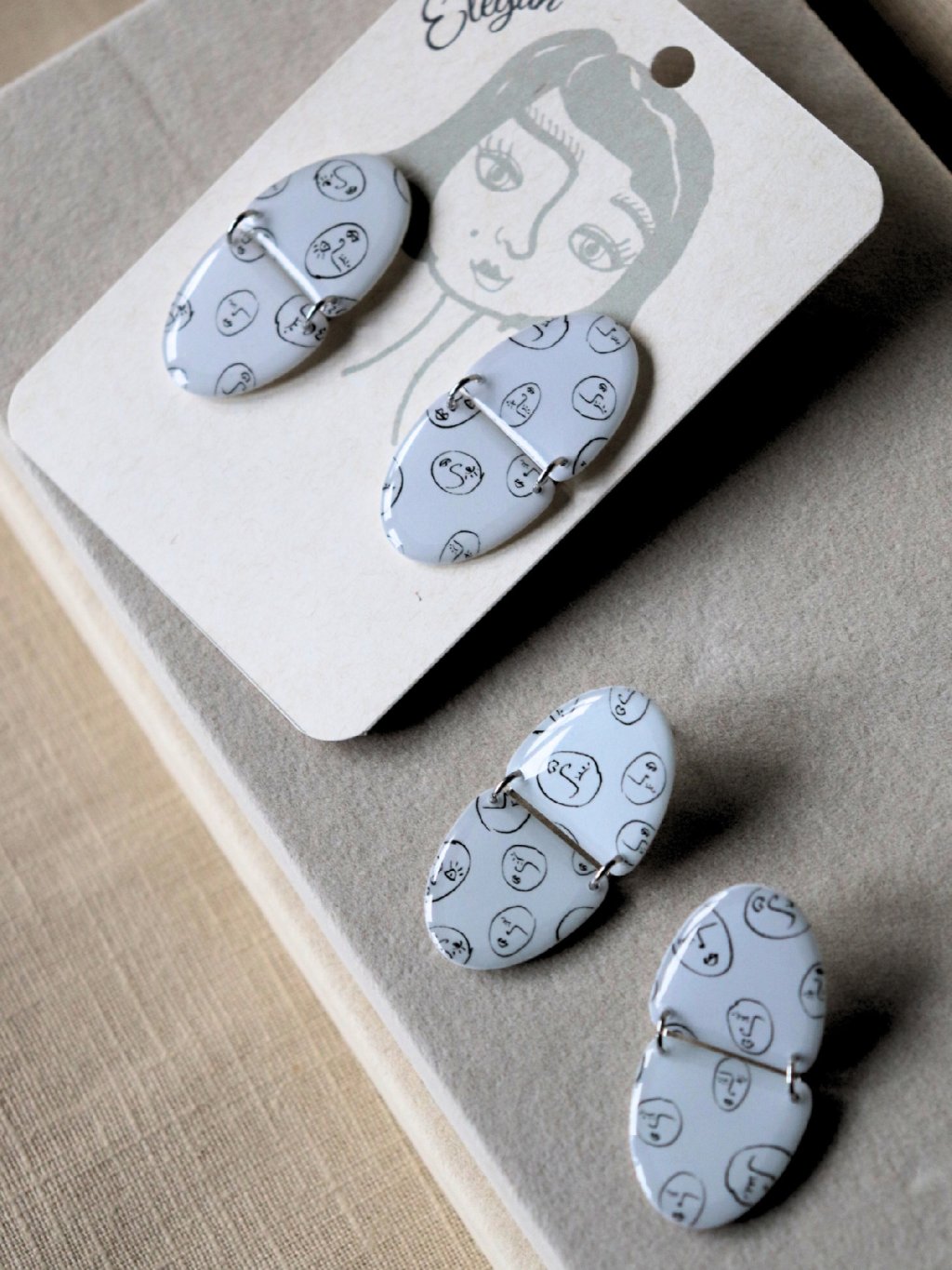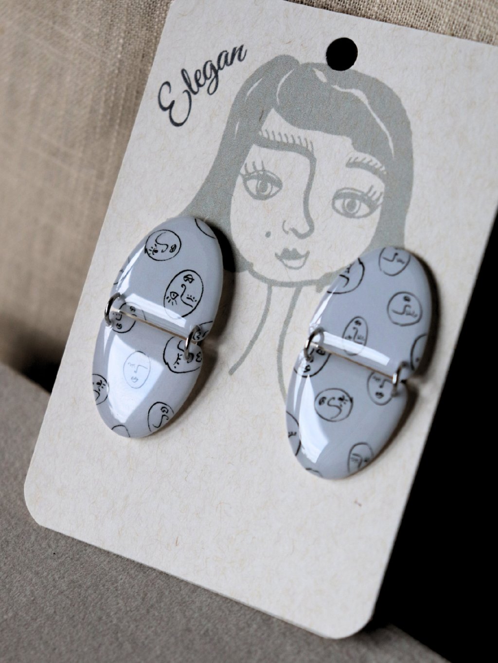 Náušky k vám dorazí na papírové kartičce s naší ilustrací. :)